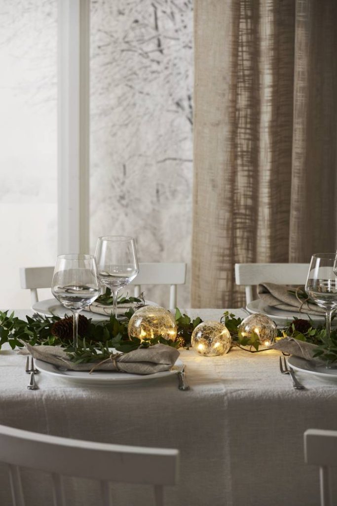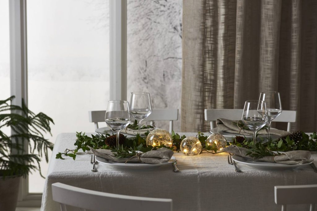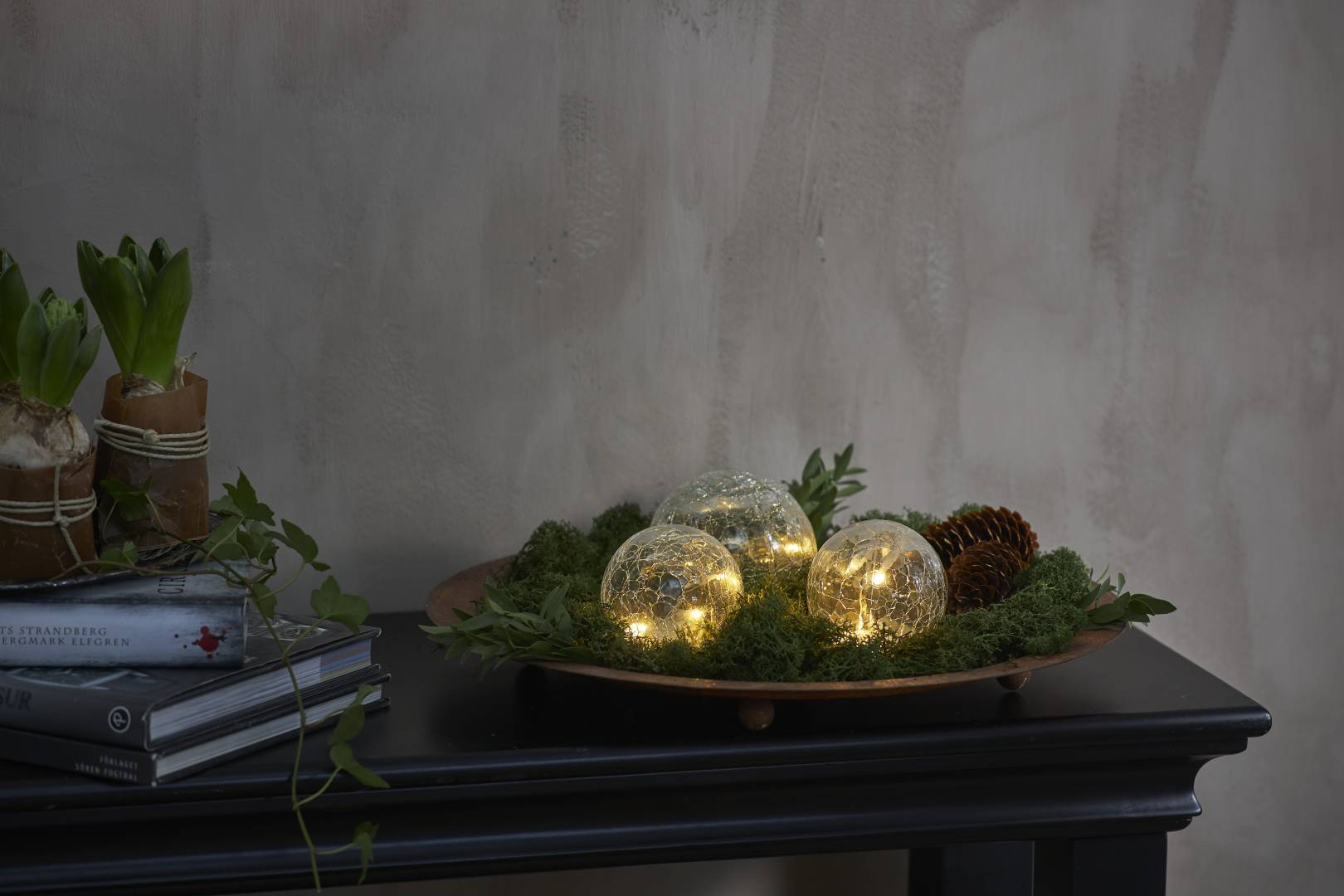 Kolmesta lasipallosta koostuva pöytäkoriste sisäkäyttöön.