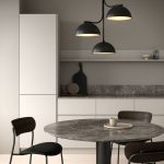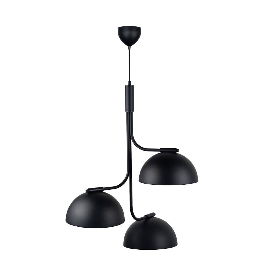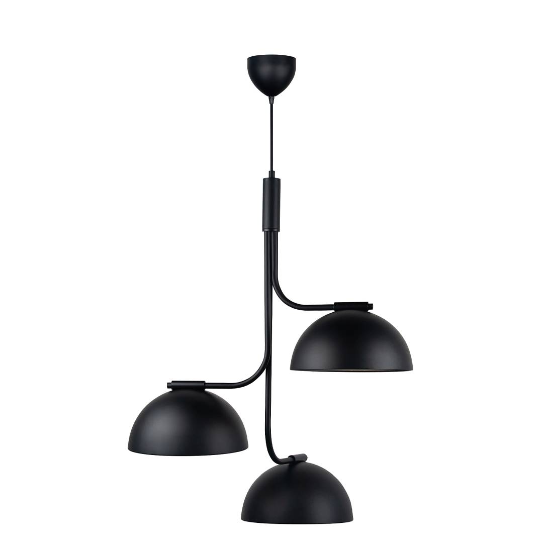 3-osainen pehmeälinjainen, veistoksellinen riippuvalaisin. Varjostinten diffuusorit luovat tasaisen, häikäisemättömän valaistuksen.