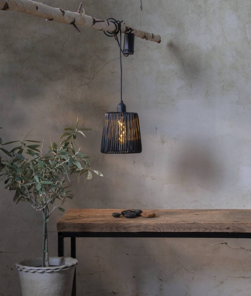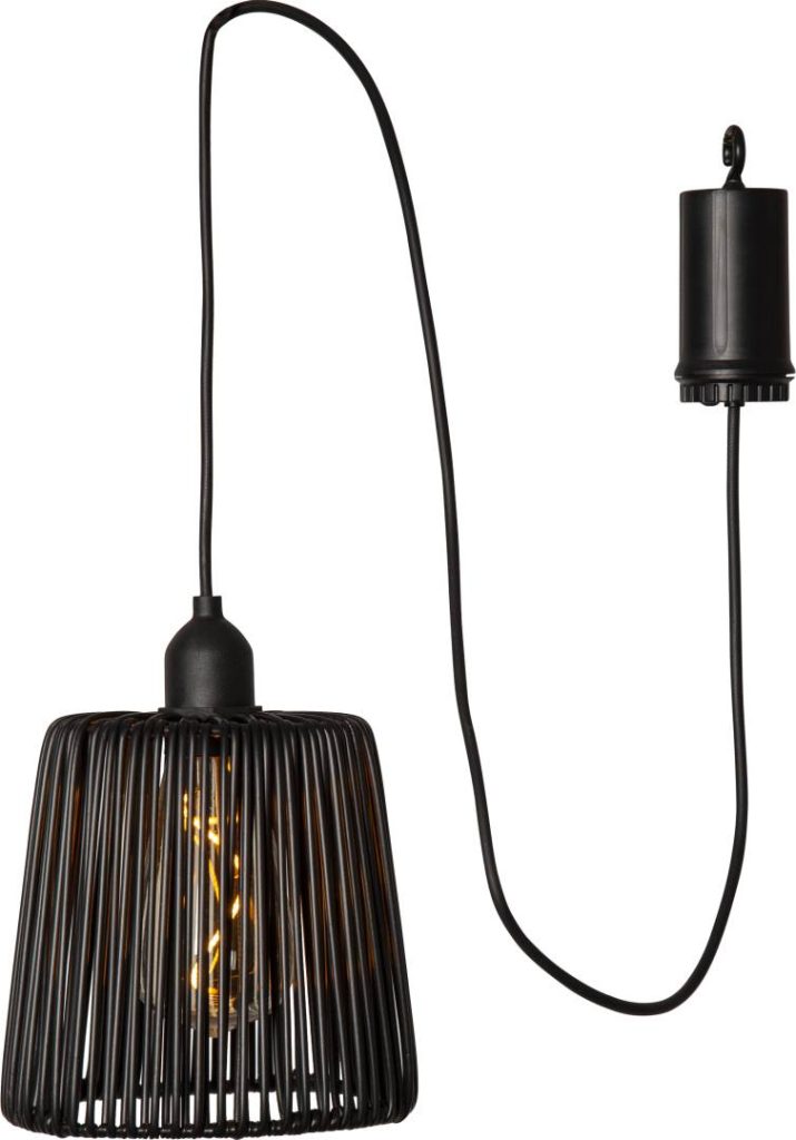 Elegantti ulko- ja sisäkäyttöön sopiva polyrottinkivarjostin kiinteällä spiraalifilamentti-LED-lampulla. Paristokäyttöinen.
