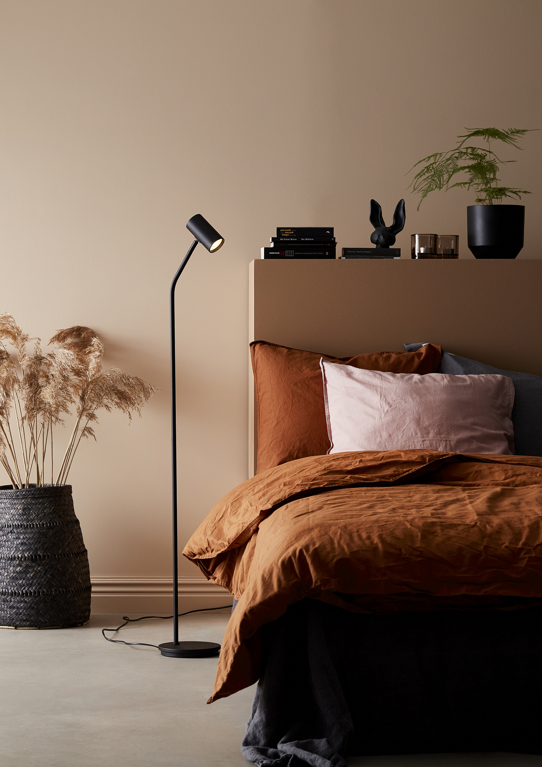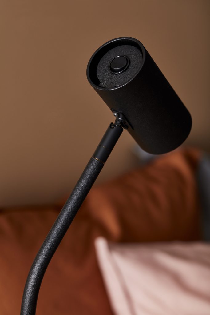 Tyylikkäässä Tyson-lattiavalaisimessa on säädettävä varjostin, mikä tekee Tysonista täydellisen lukulampun. Sopii esimerkiksi olo- tai makuuhuoneeseen.