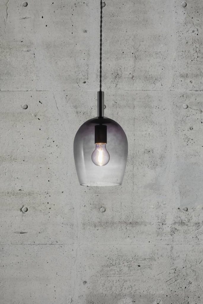 Riippuvalaisin ovaalin mallisella, suupuhalletulla lasivarjostimella.