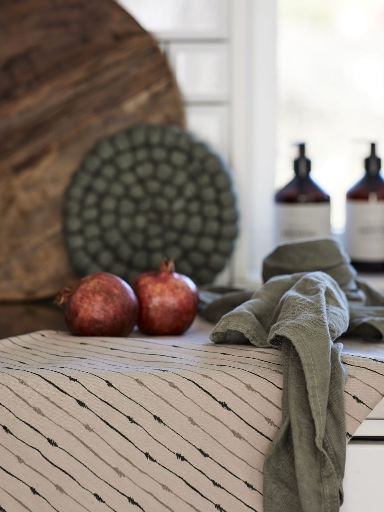 Pöytäliina pehmeää puuvillaa, painettu kuviointi. Viimeistele kaunis kattaus yhteensopivilla kangasserveteillä ja alusliinalla.