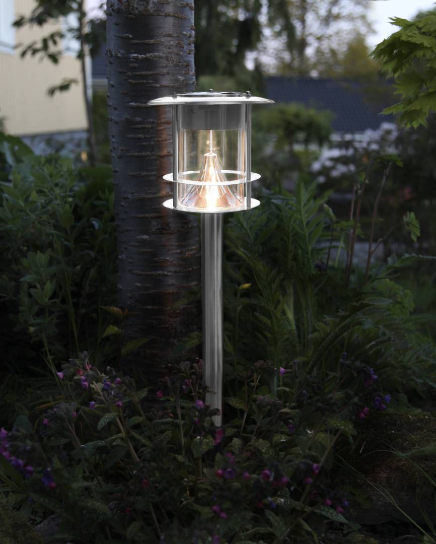 Aurinkokennolla toimiva 64,5 cm korkea pollari ruostumatonta terästä. Muovikuvun sisällä on lämpimän valkoinen LED-valo, joka loistaa hämärällä 15 lumenin valoteholla. Sopii esimerkiksi sisäänkäynnin läheisyyteen, kulkureittien varrelle tai puutarhaan. Pakkaus sisältää kaksi valaisinta.