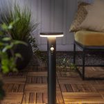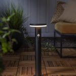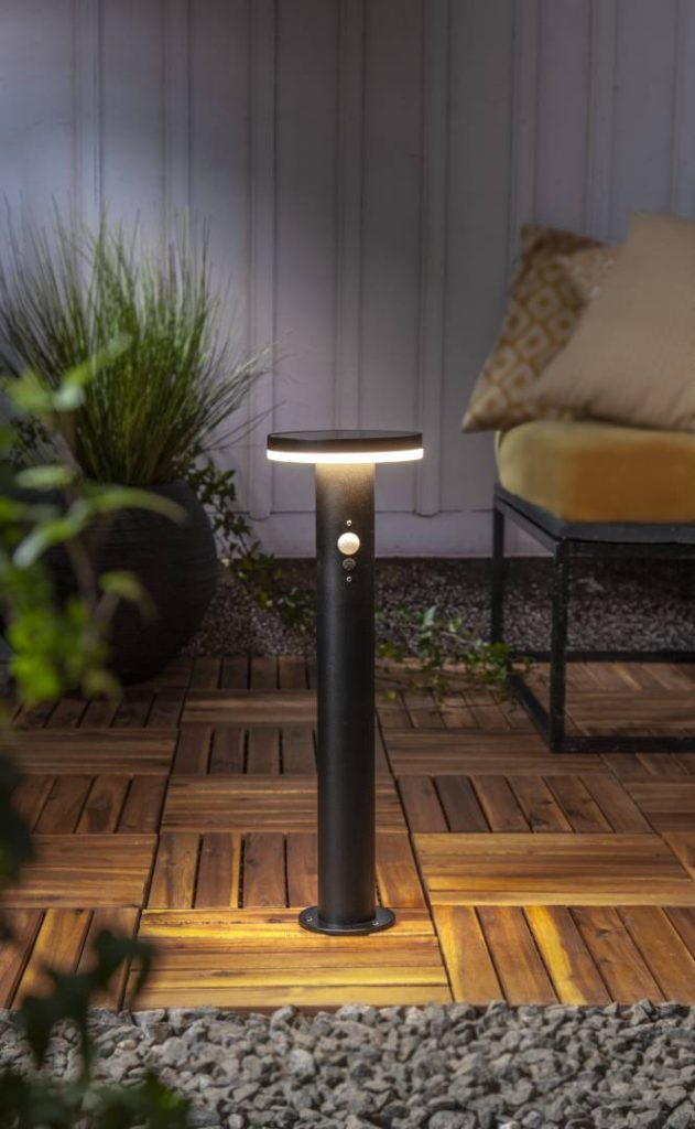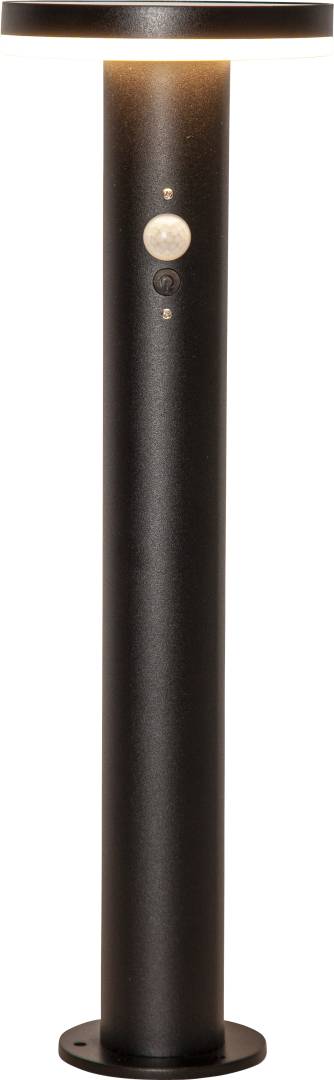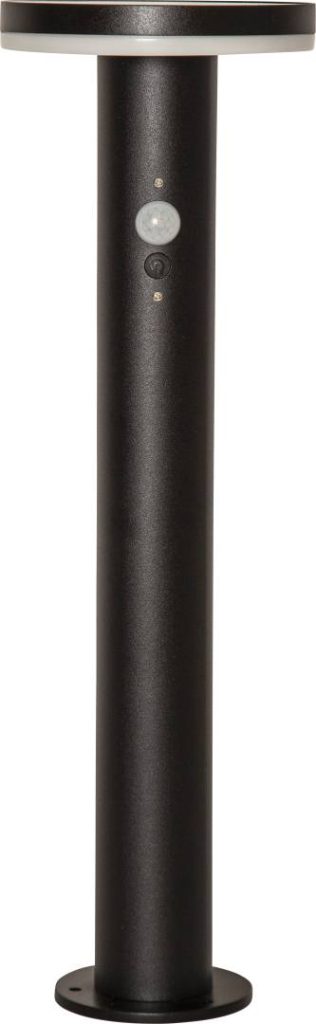 Aurinkokennolla toimiva metallista valmistettu 50 cm korkea moderni pollarivalaisin liiketunnistimella ja lämpimän valkoisella valolla. Sopii esimerkiksi sisäänkäynnin läheisyyteen, kulkureittien varrelle tai puutarhaan.