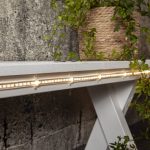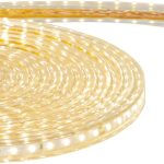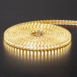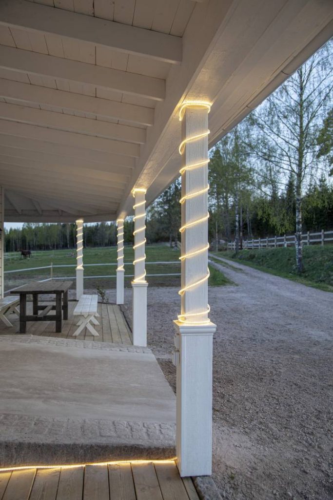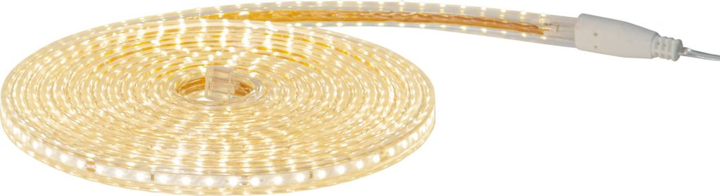 5 metriä pitkä litteä valoletku ulkokäyttöön 480 lämpimän valkoisella LED-valolla. Miellyttävä valo.