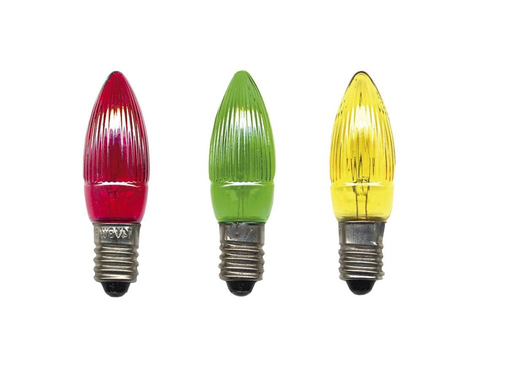 Varalamppu 16-osaiseen jouluvalosarjaan. Pakkaus sisältää 3 lamppua: punainen, vihreä ja keltainen. Sisäkäyttöön.