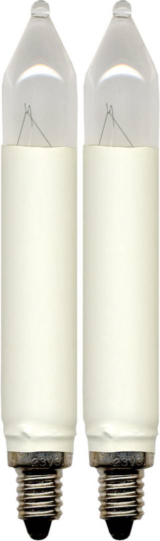 Joulukuusen varalamppu valkoinen/kirkas. Sopii 16-osaiseen kuusenkynttiläsarjaan. Pakkaus sisältää 2 lamppua. Sisäkäyttöön.