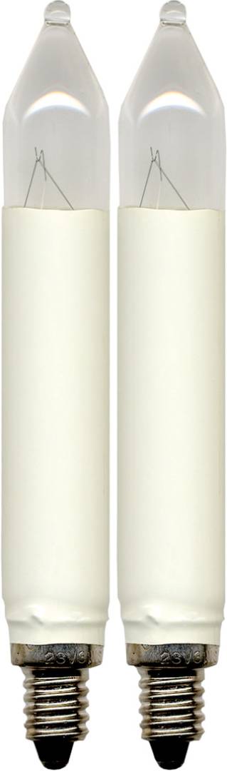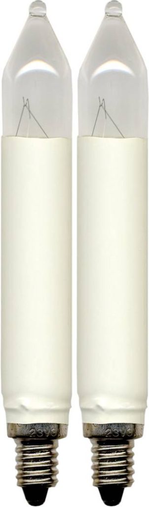 Joulukuusen varalamppu valkoinen/kirkas. Sopii 10-osaiseen kuusenkynttiläsarjaan. Pakkaus sisältää 2 lamppua. Sisäkäyttöön.