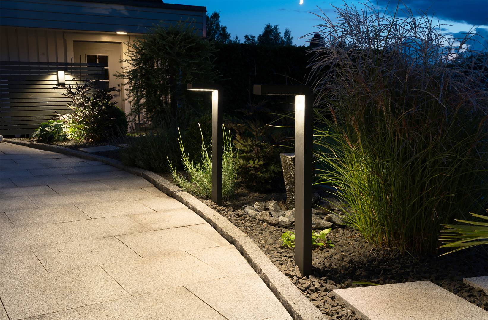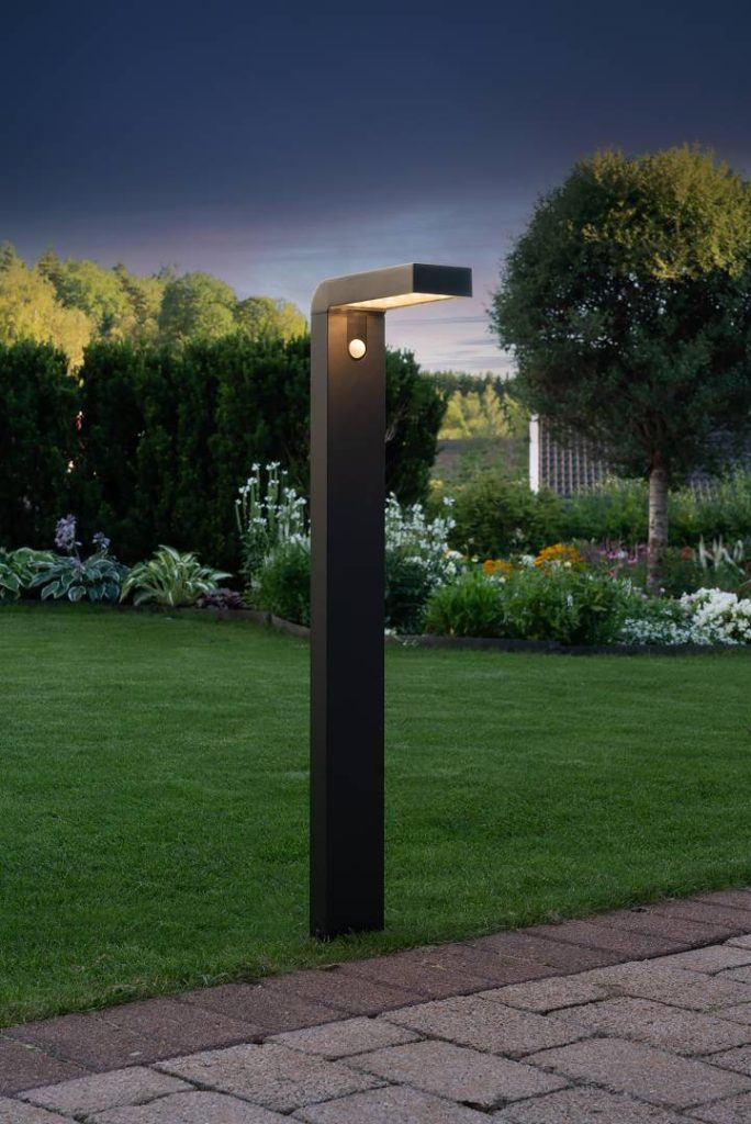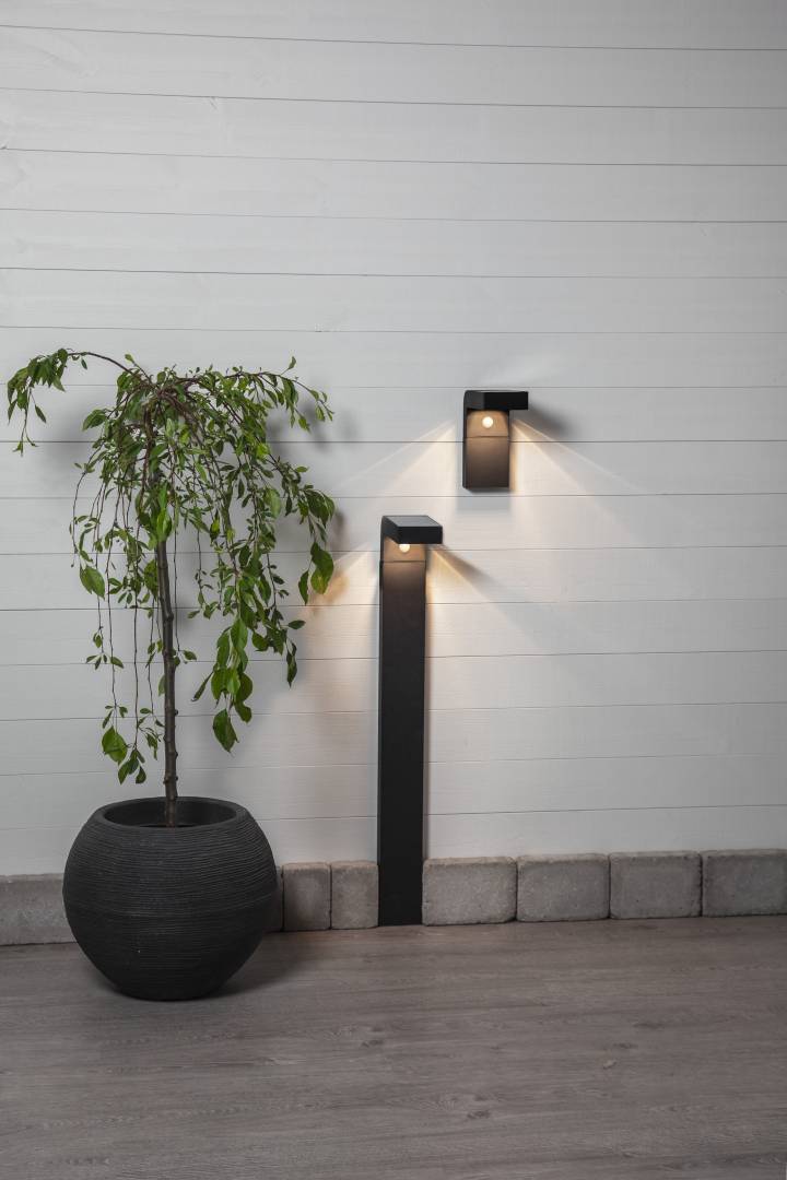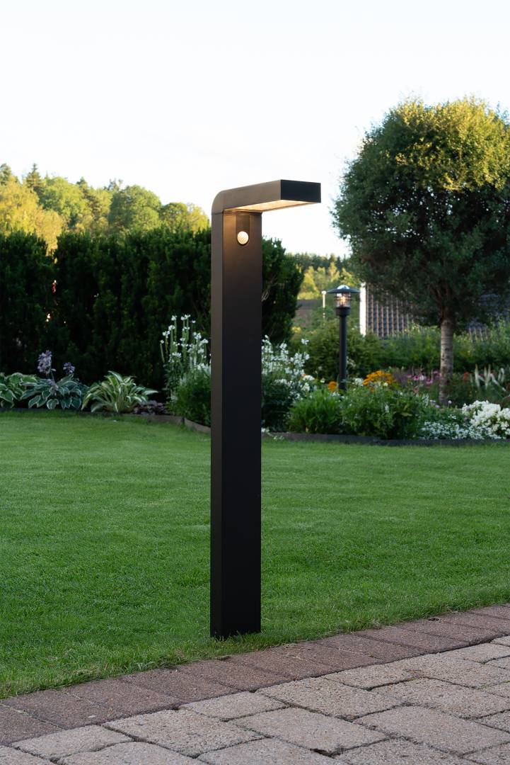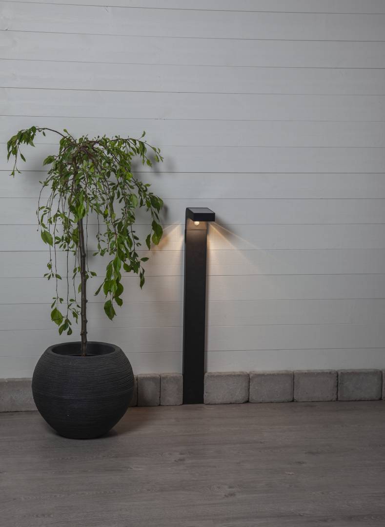 Aurinkokennolla toimiva pollari. Mustasta muovista valmistettu pollari valaisee hämärällä 30 lumenin valoteholla. Pollarissa on myös liikesensori, ja kun sensori havaitsee liikettä, nousee valoteho 300 lumeniin 25 sekunnin ajaksi, jonka jälkeen palaa 30 lumeniin.