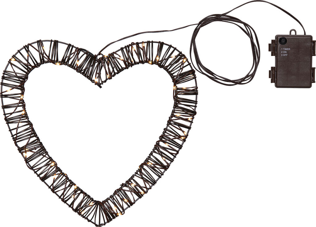 Vicke Heart -koristeessa on metallirunko, jonka ympärille on kiedottu ruskeaa polyrottinkia. Koristetta valaisevat 50 lämpimän valkoista LED-valopistettä. Sydänkoriste sopii ulkokäyttöön, esimerkiksi oveen tai seinälle.