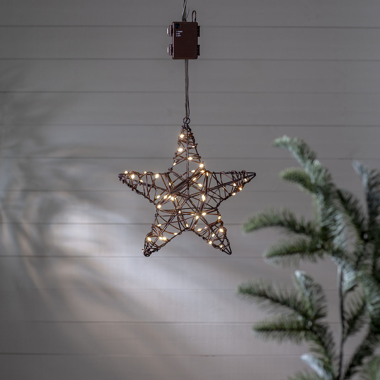 Vicke Star -koristeessa on metallirunko, jonka ympärille on kiedottu ruskeaa polyrottinkia. Koristetta valaisevat 50 lämpimän valkoista LED-valopistettä. Tähti sopii sekä sisä- että ulkokäyttöön.