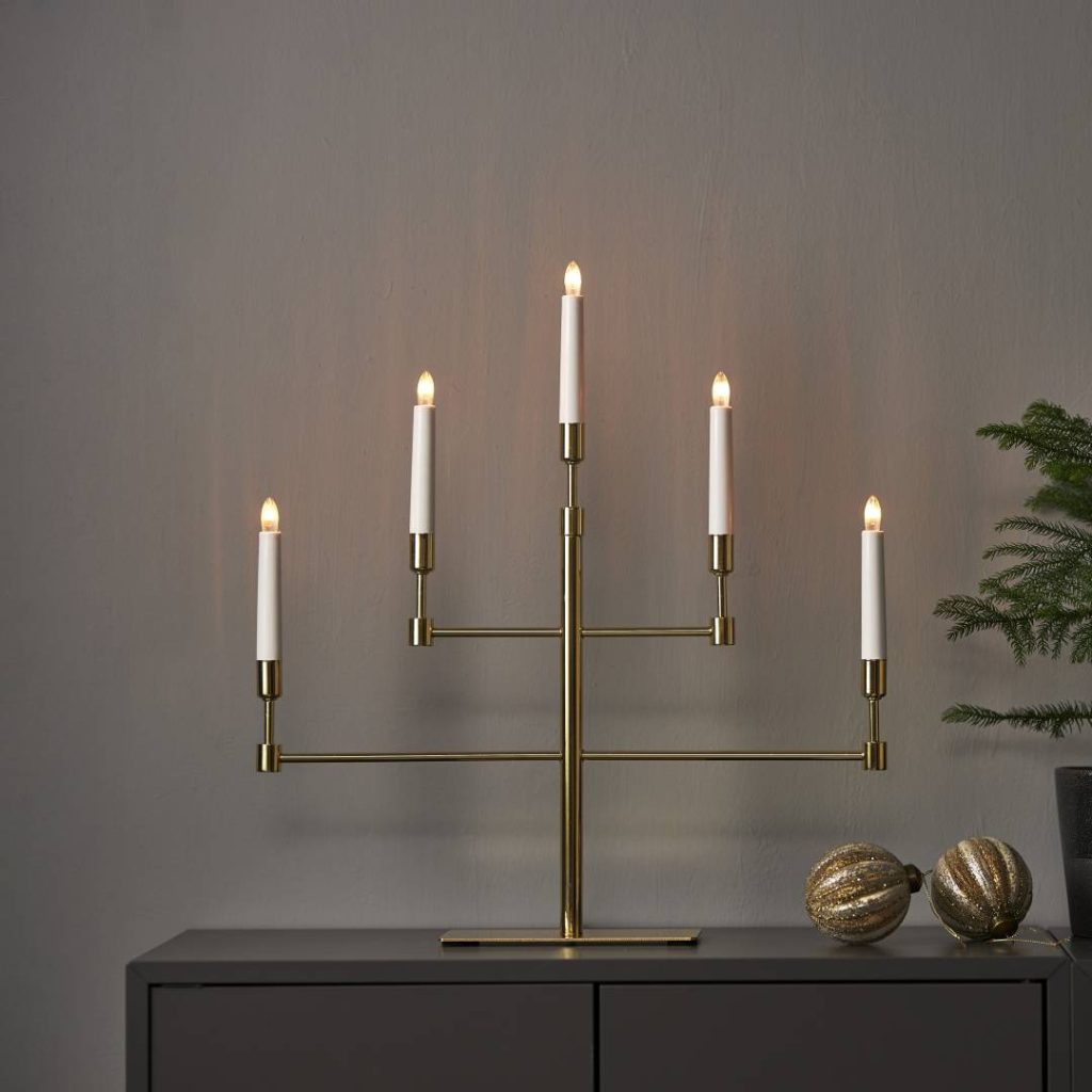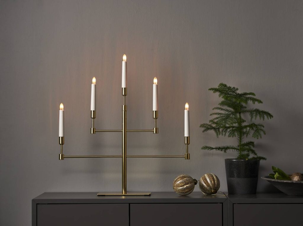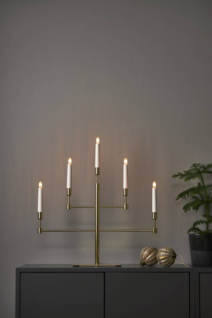 Kynttelikössä on 5 vaihdettavaa lamppua ja 180 cm pitkä johto katkaisijalla.