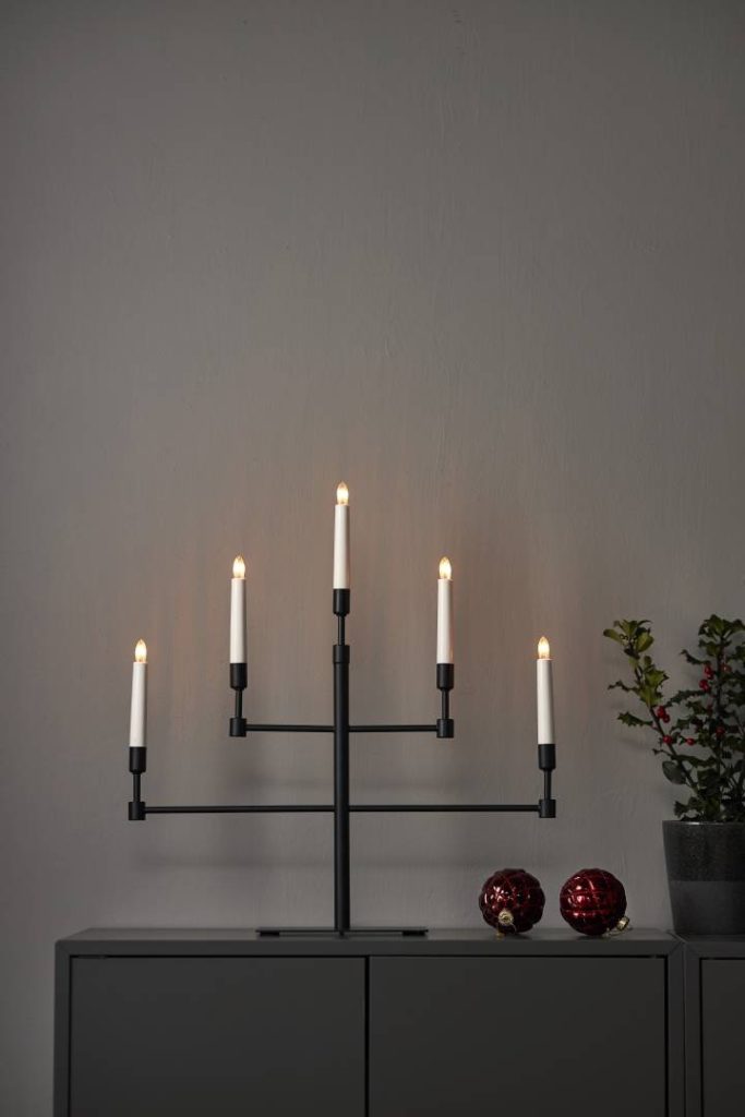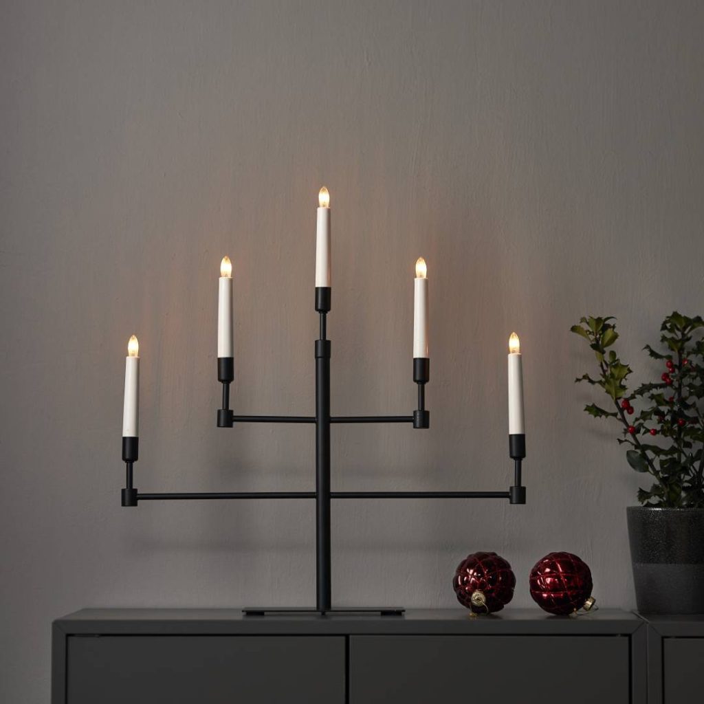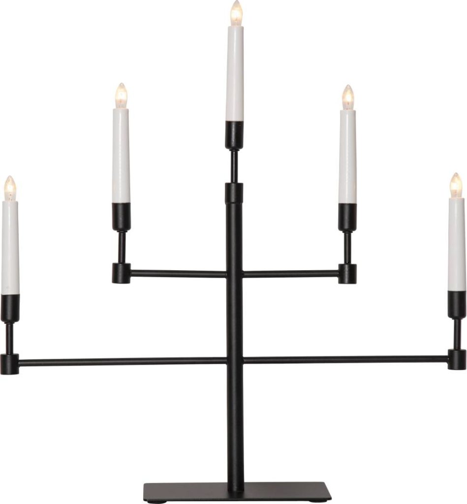 Kynttelikössä on 180 cm pitkä johto katkaisijalla ja viisi vaihdettavaa lamppua.