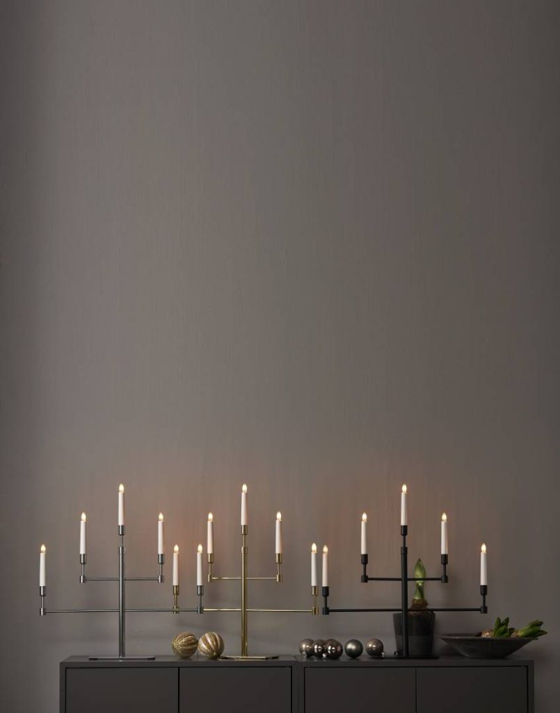 Moderni metallikynttelikkö, joka sopii jouluajan koristeeksi esimerkiksi ikkunalaudalle tai lipaston päälle.