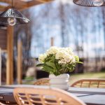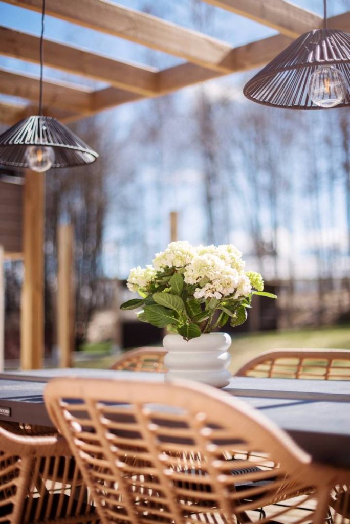 Musta ulkokäyttöön sopiva varjostin polyrottinkia.