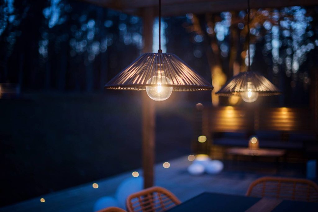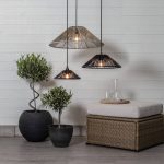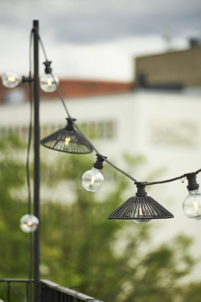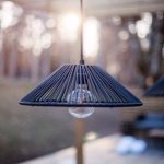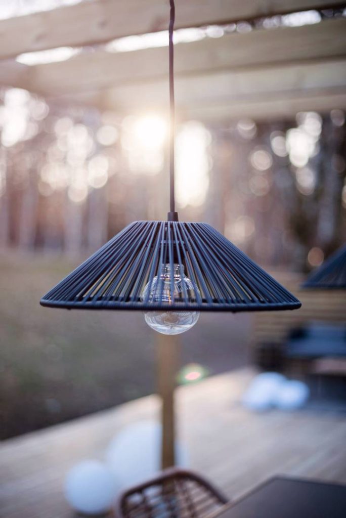 Musta ulkokäyttöön sopiva varjostin polyrottinkia.