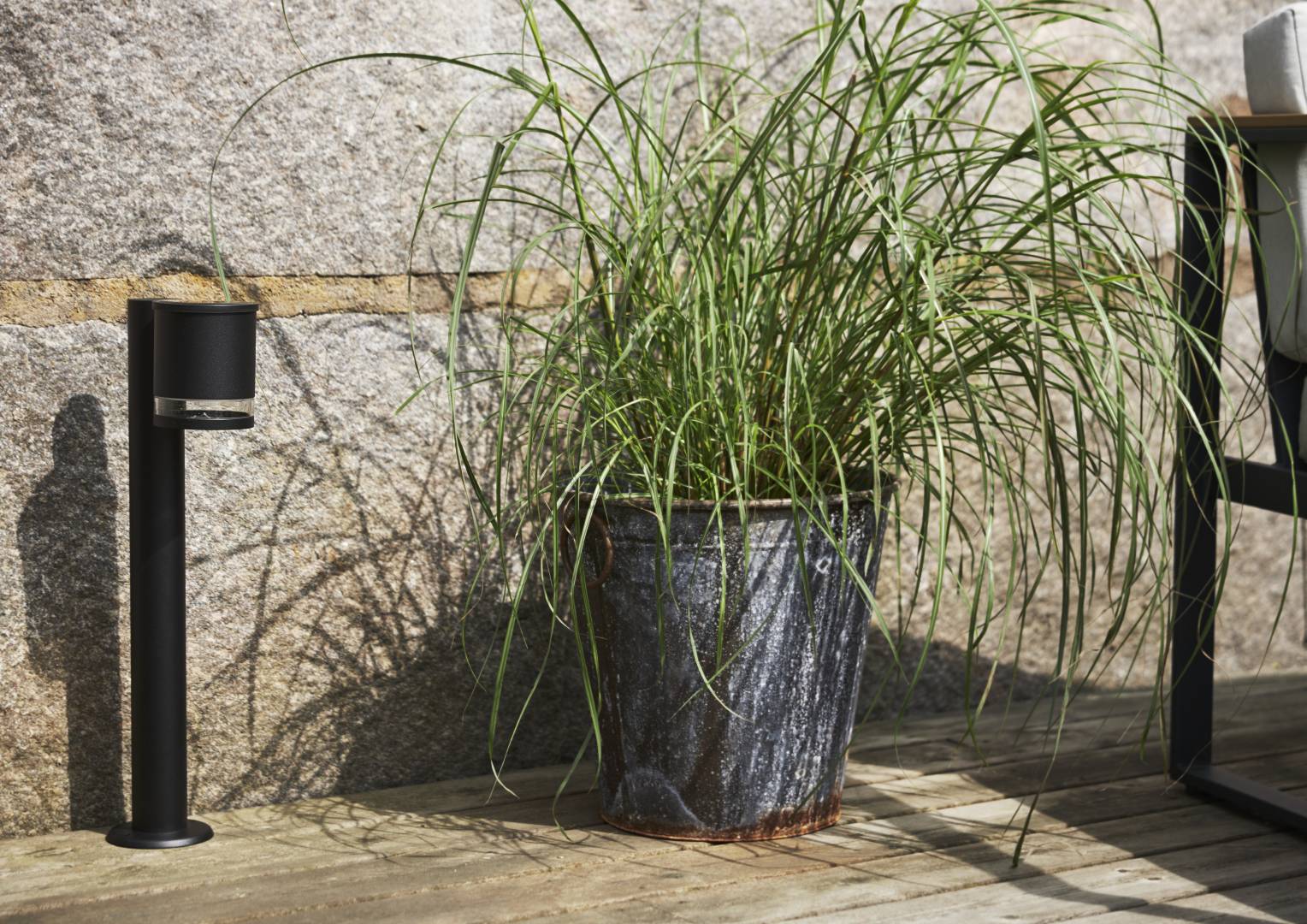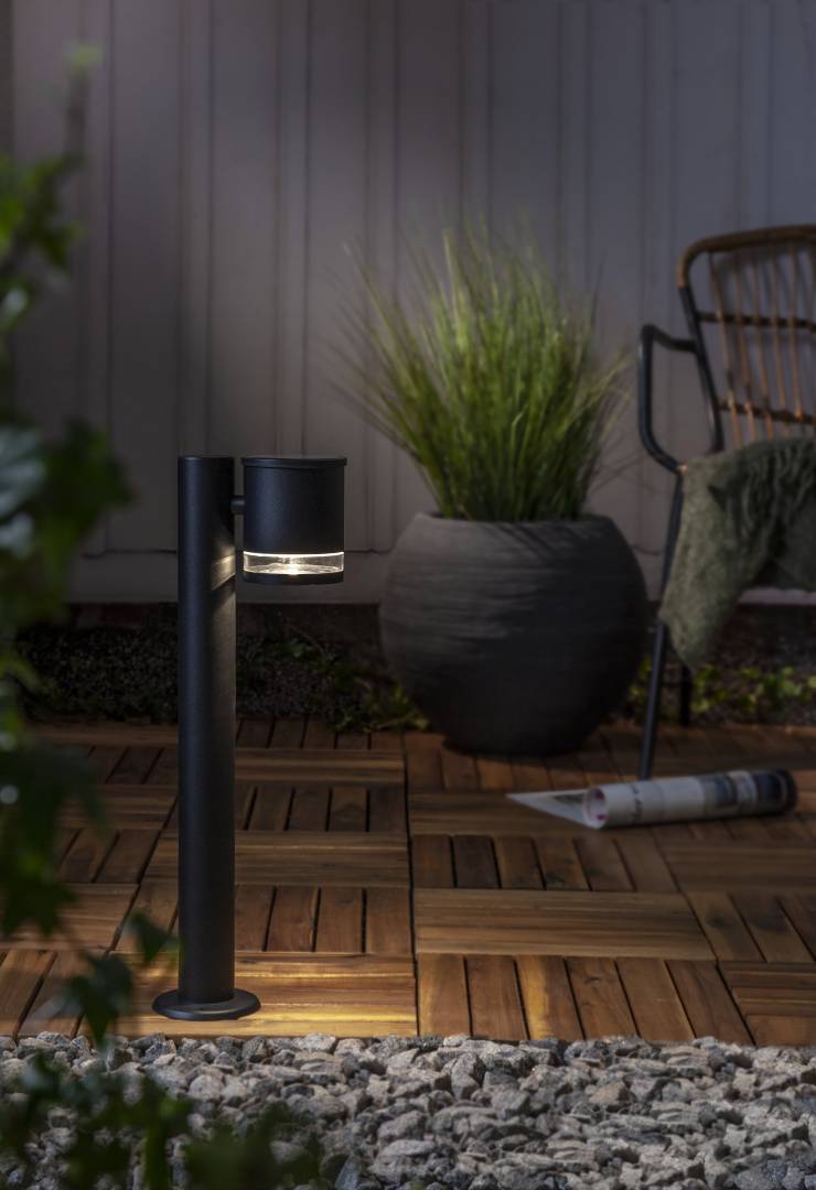 Aurinkokennolla toimiva 50 cm korkea alumiinista valmistettu pollari, jossa lämpimän valkoinen LED-valo valaisee hämärällä 55 lumenin valoteholla. Sopii esimerkiksi sisäänkäynnin läheisyyteen, kulkureittien varrelle tai puutarhaan.