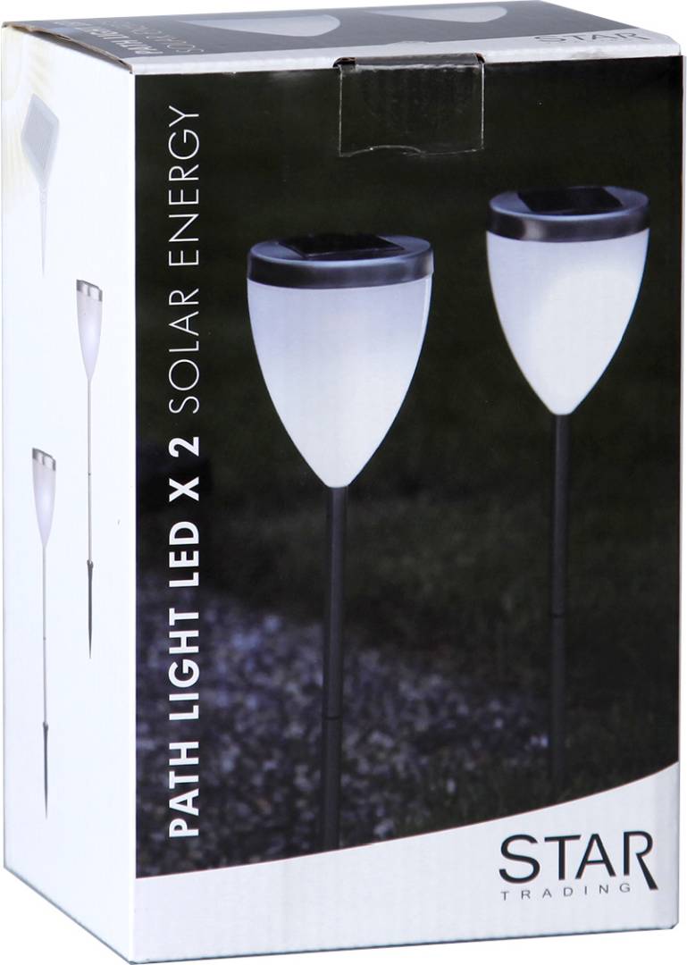 Aurinkokennolla toimiva 34 cm korkea pollari, jossa on huurretun muovikuvun sisällä kylmä valkoinen LED-valo. Sopii esimerkiksi kulkureittien varrelle tai puutarhaan. Pakkaus sisältää kaksi valaisinta.