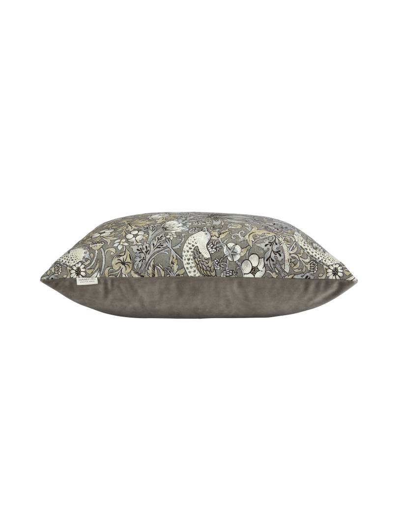 Tyynynpäällinen painetulla kuviolla, taustapuoli samettia. Vetoketju alareunassa.