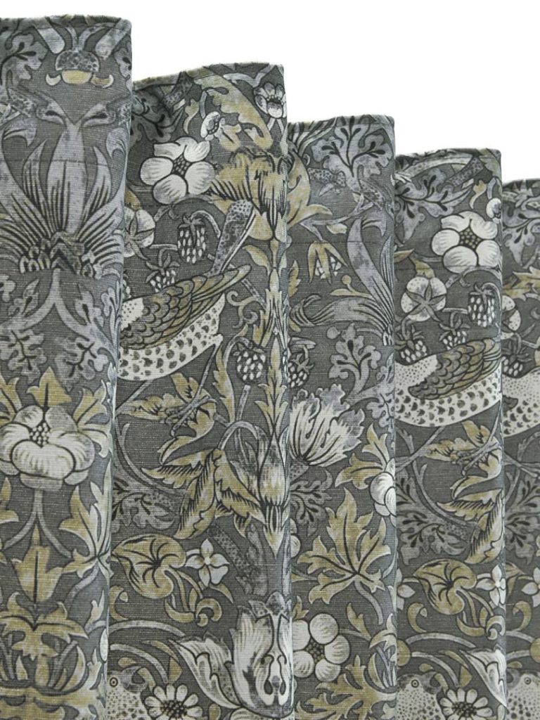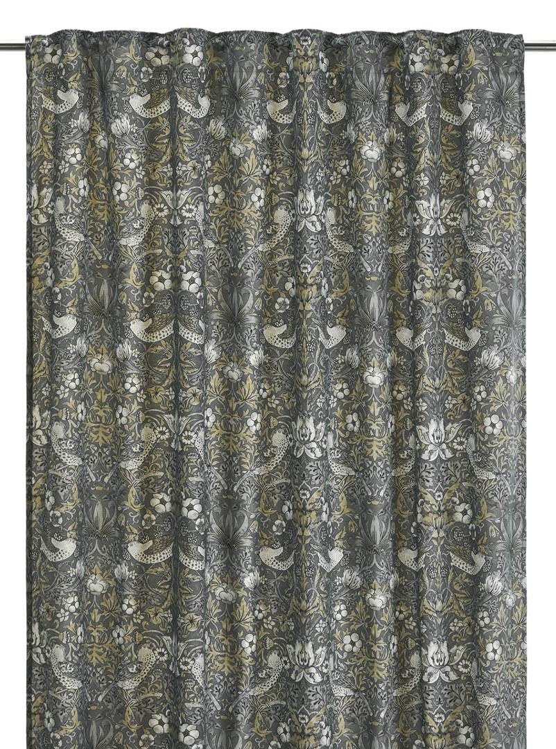 Pitkät verhot polyesterikangasta painetuilla kuvioilla. Verhoissa on monitoiminauha yläreunassa, päärmätyt sivureunat ja yliluotteluommel alareunassa. Pakkaus sisältää 2 verhoa.