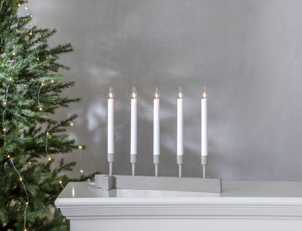Kynttelikössä on 180 cm pitkä johto katkaisijalla ja viisi vaihdettavaa lamppua.