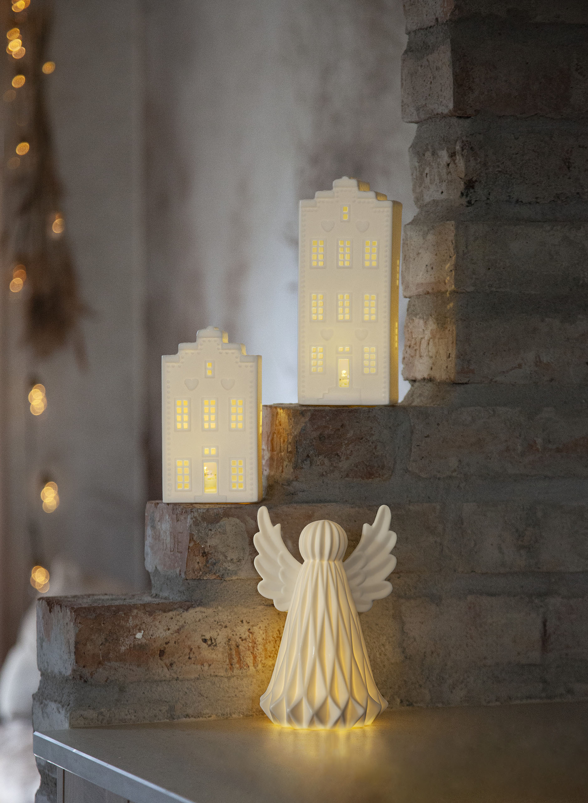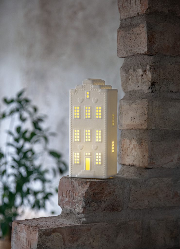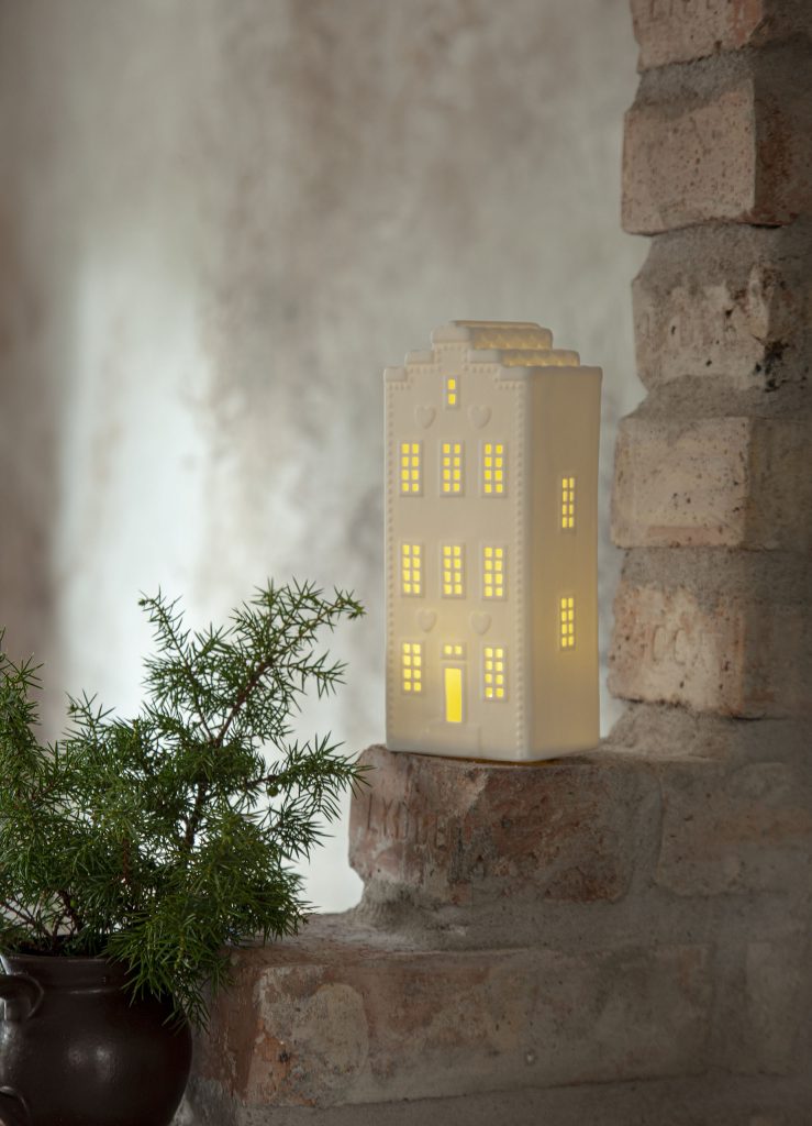 Kaunis keraaminen talolyhty, joka luo lämpimän valkoista valoa ja kauniin tunnelman kotiin. Sisäkäyttöön.