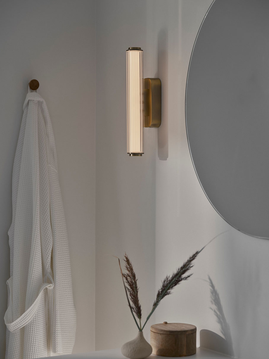 Koristeellisessa Virelle-seinävalaisimessa on uritettu diffuusori, joka pehmentää valoa ja lisää hienovaraista tekstuuria. IP44-luokituksen ansiosta valaisin sopii mainiosti kylpyhuoneisiin. Valitse asennuksen yhteydessä valkoinen valo (3000K) tai kylmä valkoinen valo (4000K). Valaisimessa on tarkka värintoisto (RA90).