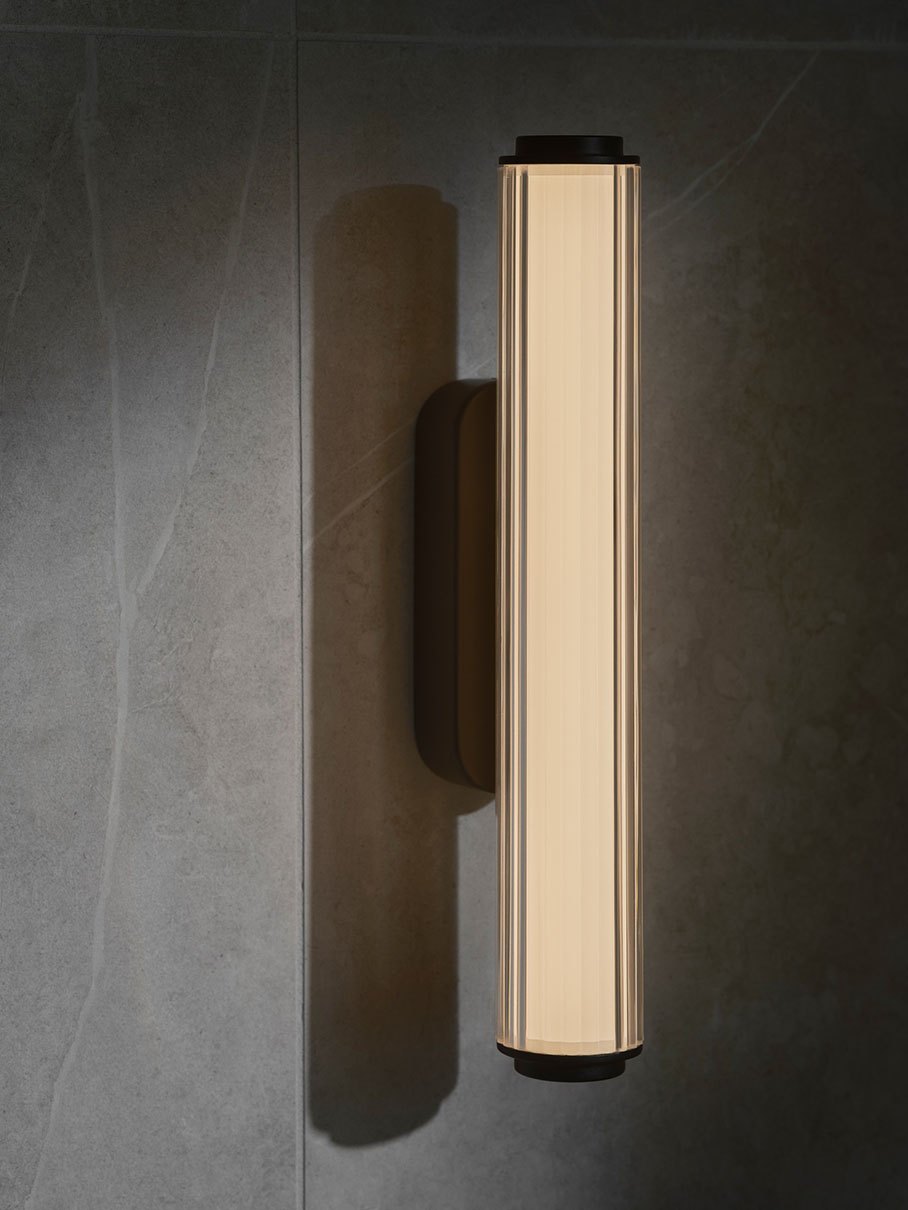 Koristeellisessa Virelle-seinävalaisimessa on uritettu diffuusori, joka pehmentää valoa ja lisää hienovaraista tekstuuria. IP44-luokituksen ansiosta valaisin sopii mainiosti kylpyhuoneisiin. Valitse asennuksen yhteydessä valkoinen valo (3000K) tai kylmä valkoinen valo (4000K). Valaisimessa on tarkka värintoisto (RA90).