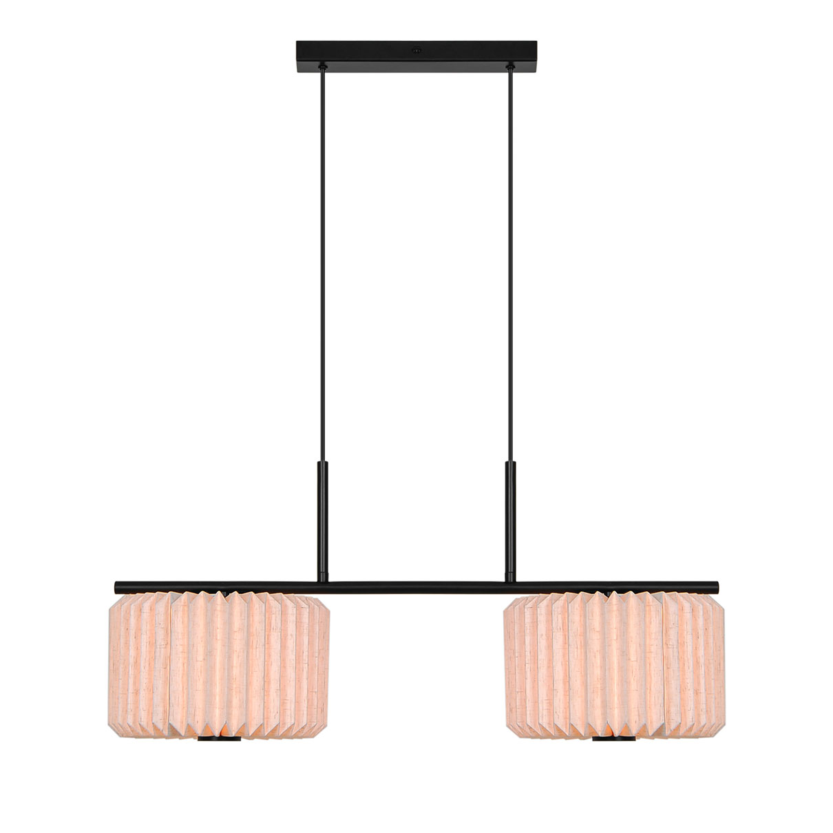 Vivienne Dual -riippuvalaisimessa yhdistyy kangas ja metalli ajattomaan ja eleganttiin tyyliin. Pliseerattu kangasvarjostin lisää pehmeän koristeellisen ilmeen ja luo hajautetun valon, joka tuo lämpöä ja mukavuutta huoneeseen. Täydellinen pehmeäksi valoksi ruokapöydän yläpuolelle.