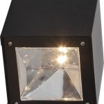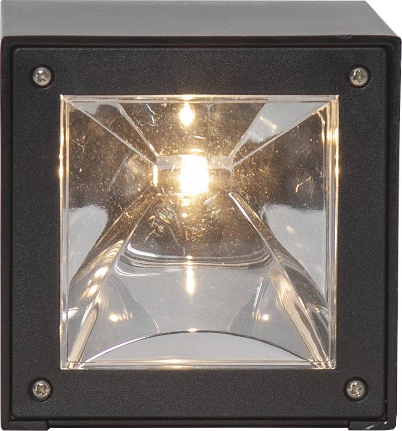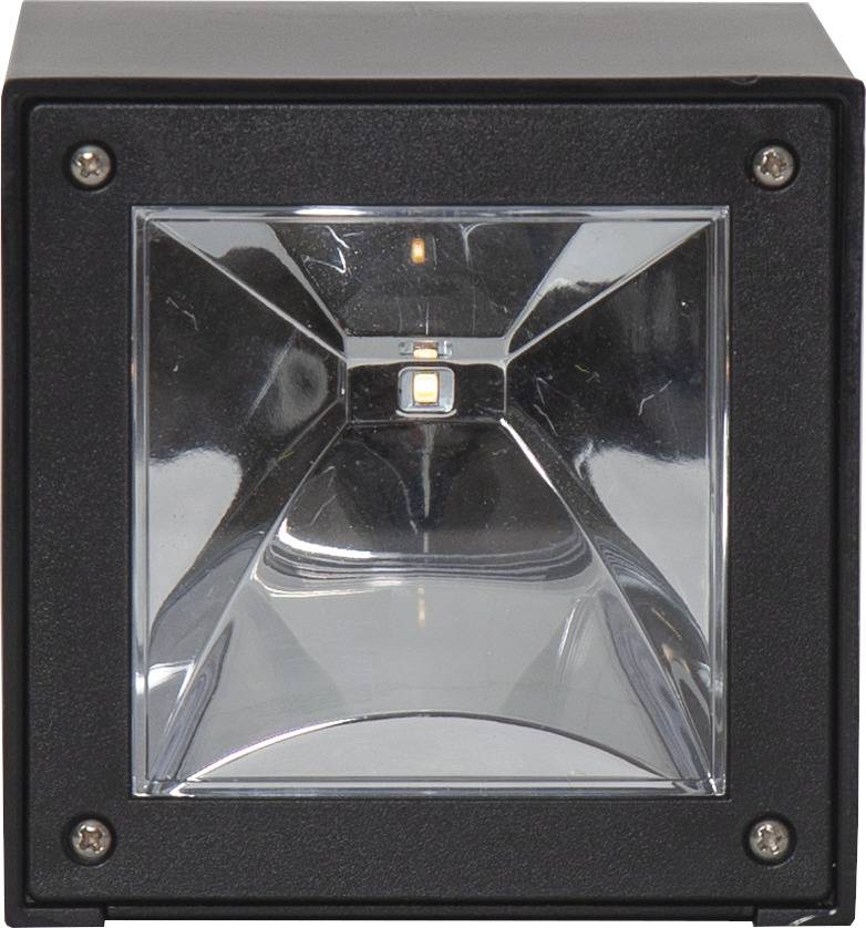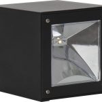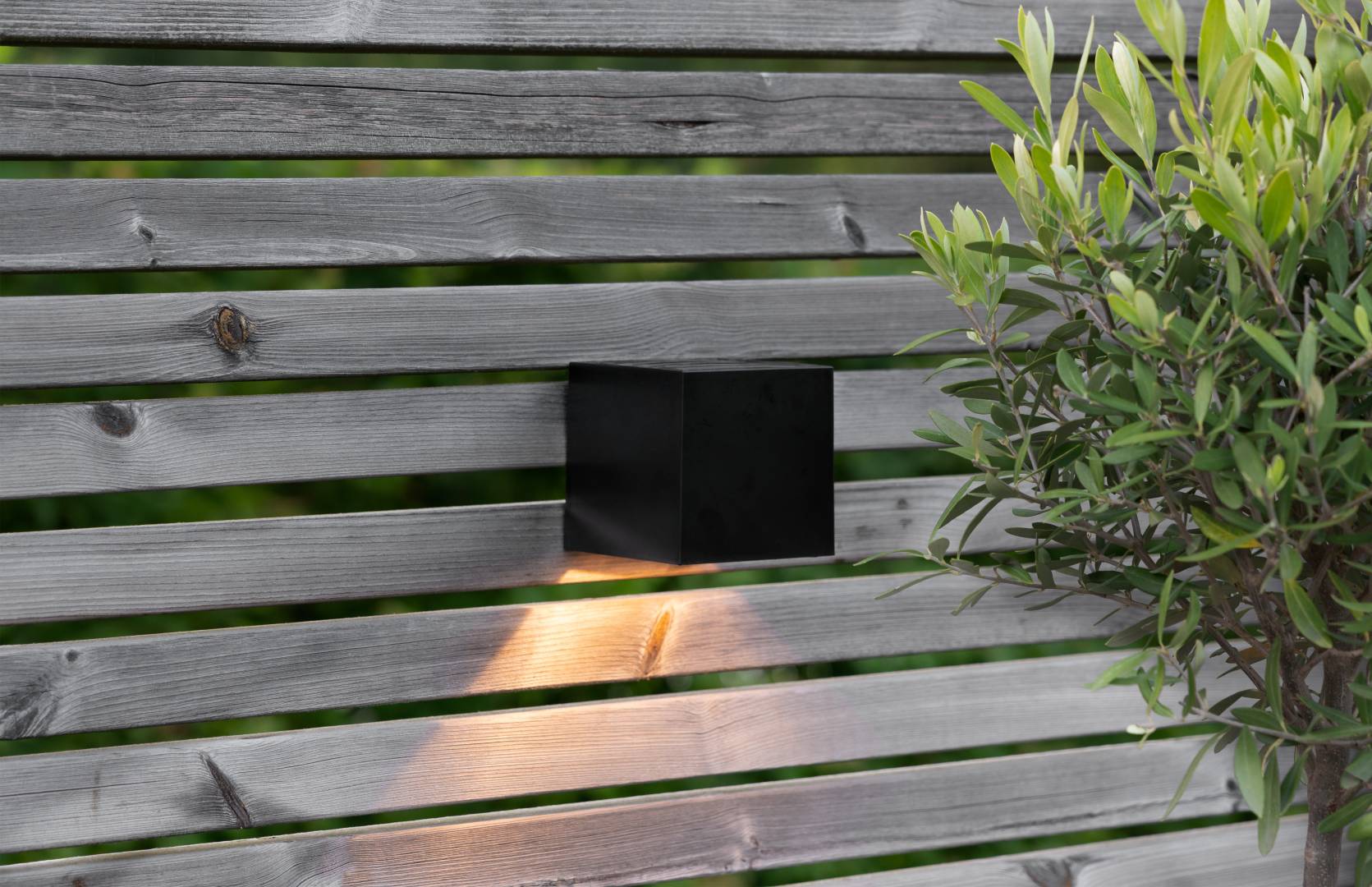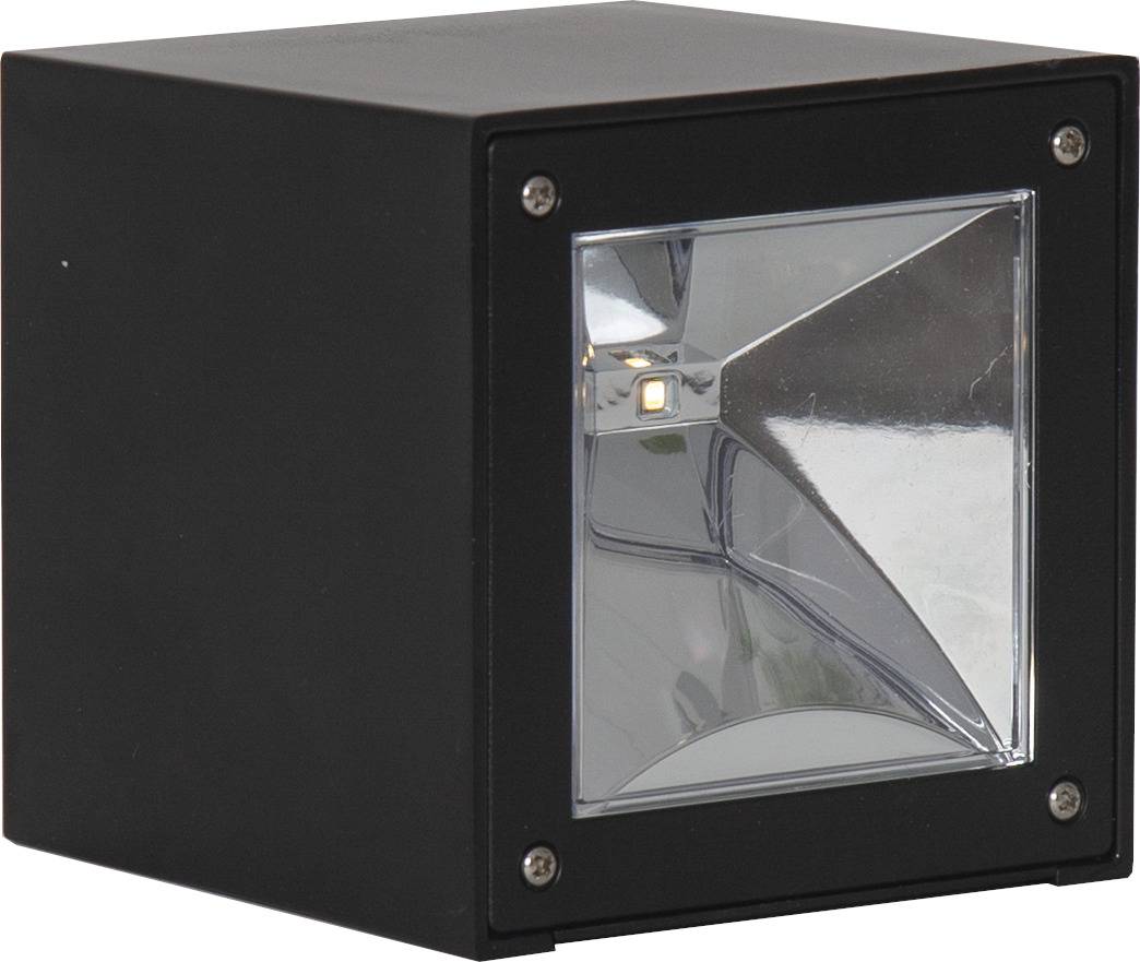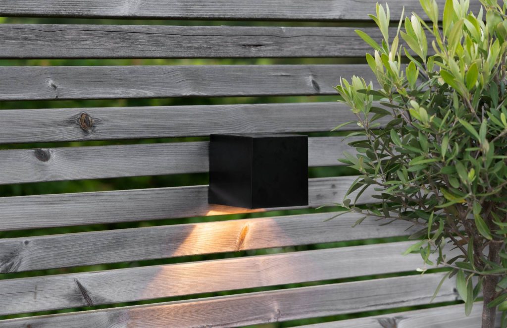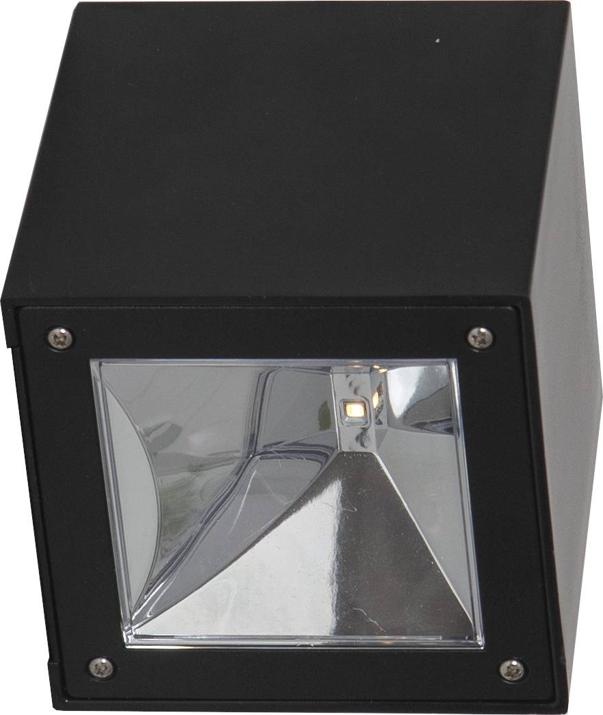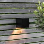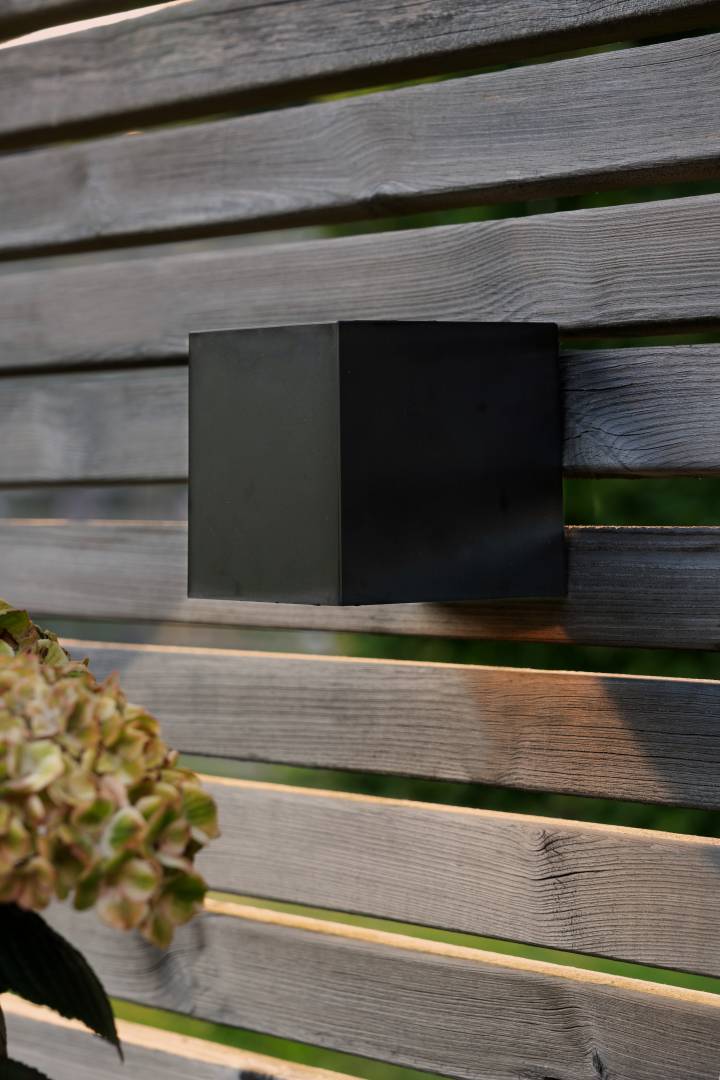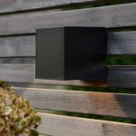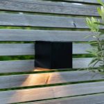 Aurinkokennolla toimiva moderni seinävalaisin, joka hämärällä valaisee lämpimän valkoisella LED-valolla 20 lumenin valoteholla.