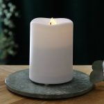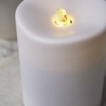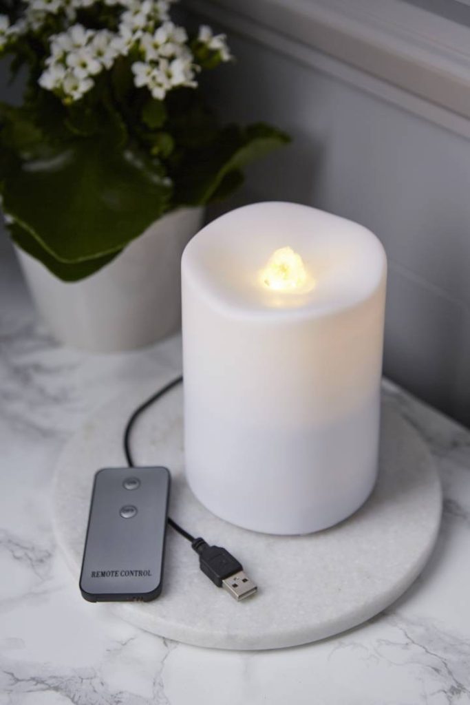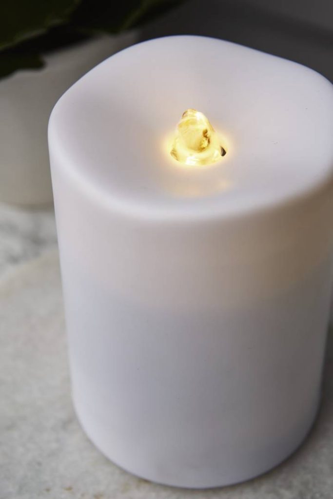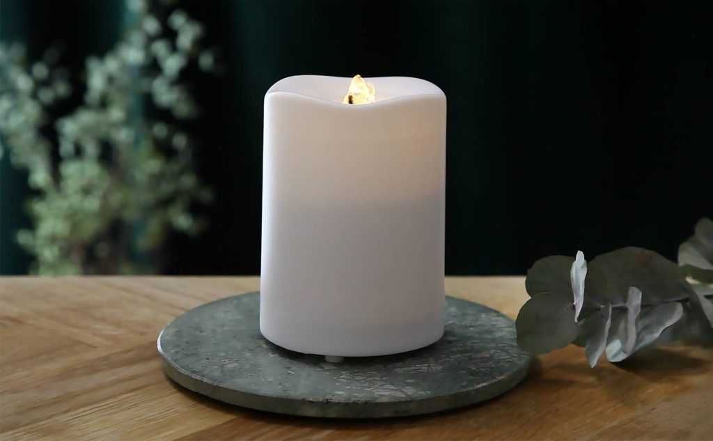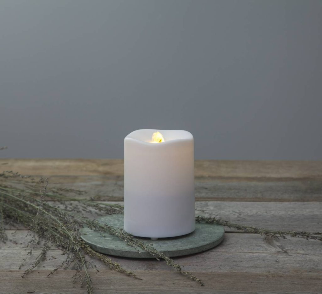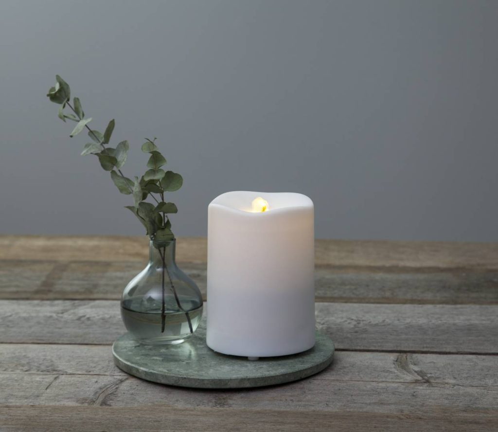 Muovinen LED-kynttilä, jossa on lämmin valkoinen valo ja joka toimii myös pienenä suihkulähteenä. Vesisäiliön tilavuus on 150 ml. Sisäkäyttöön.