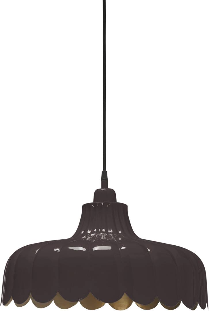 Valaisimessa on 160 cm pitkä musta johto ja varjostimen kanssa samansävyinen metallinen kattokuppi. Asennus kattokoukkuun, sokeripalaliitäntä. Ei sisällä valaisinpistoketta.
