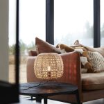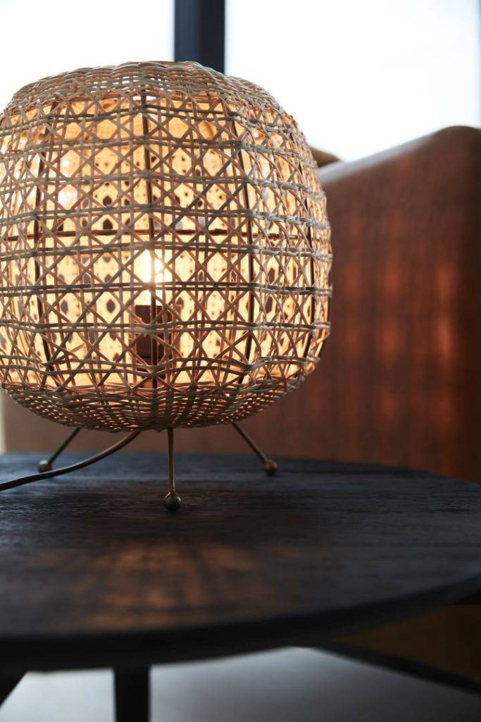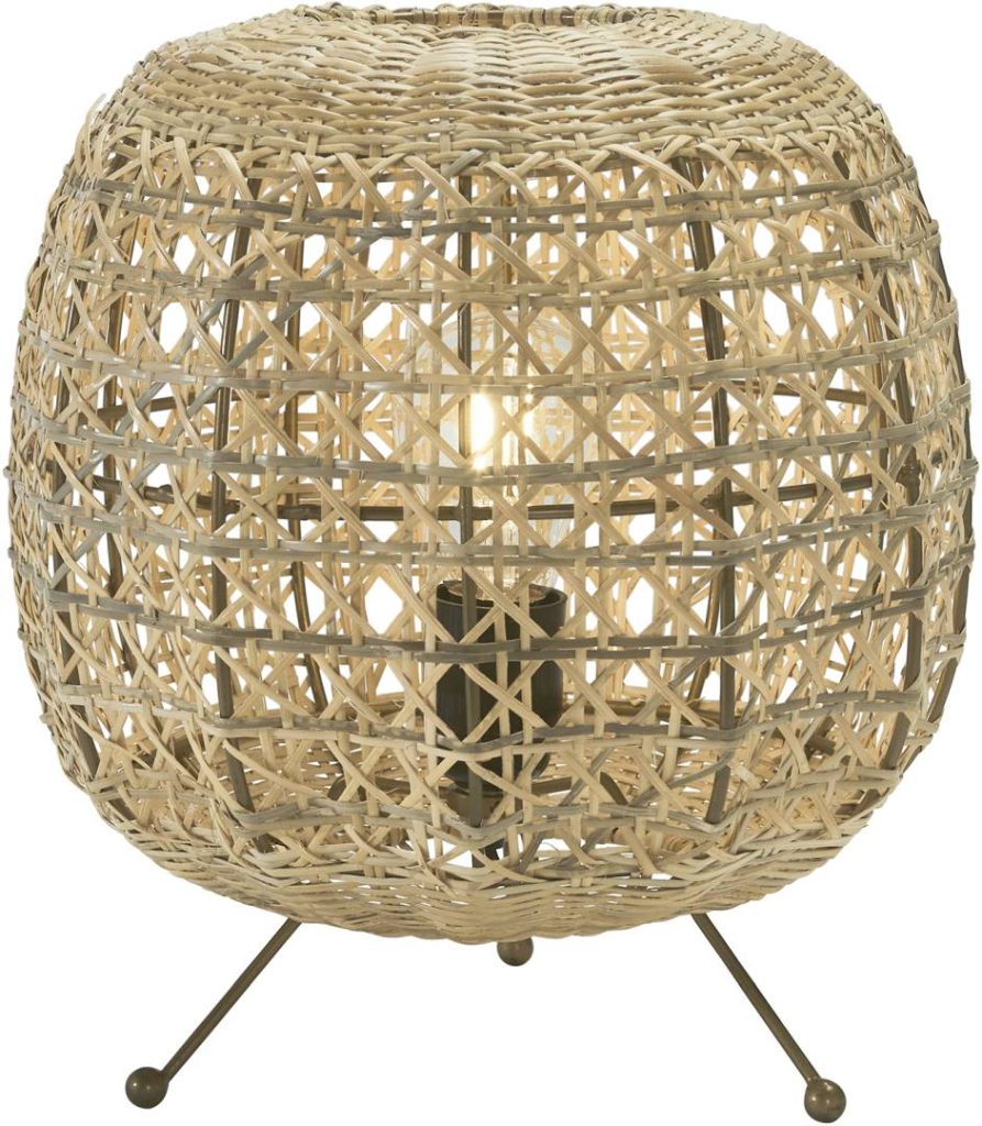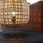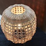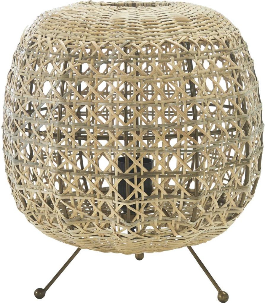 Käsin punottu pöytävalaisin rottinkia.