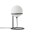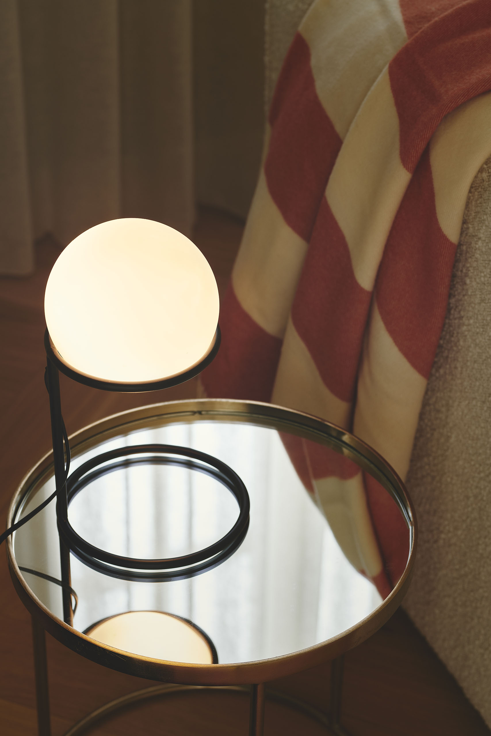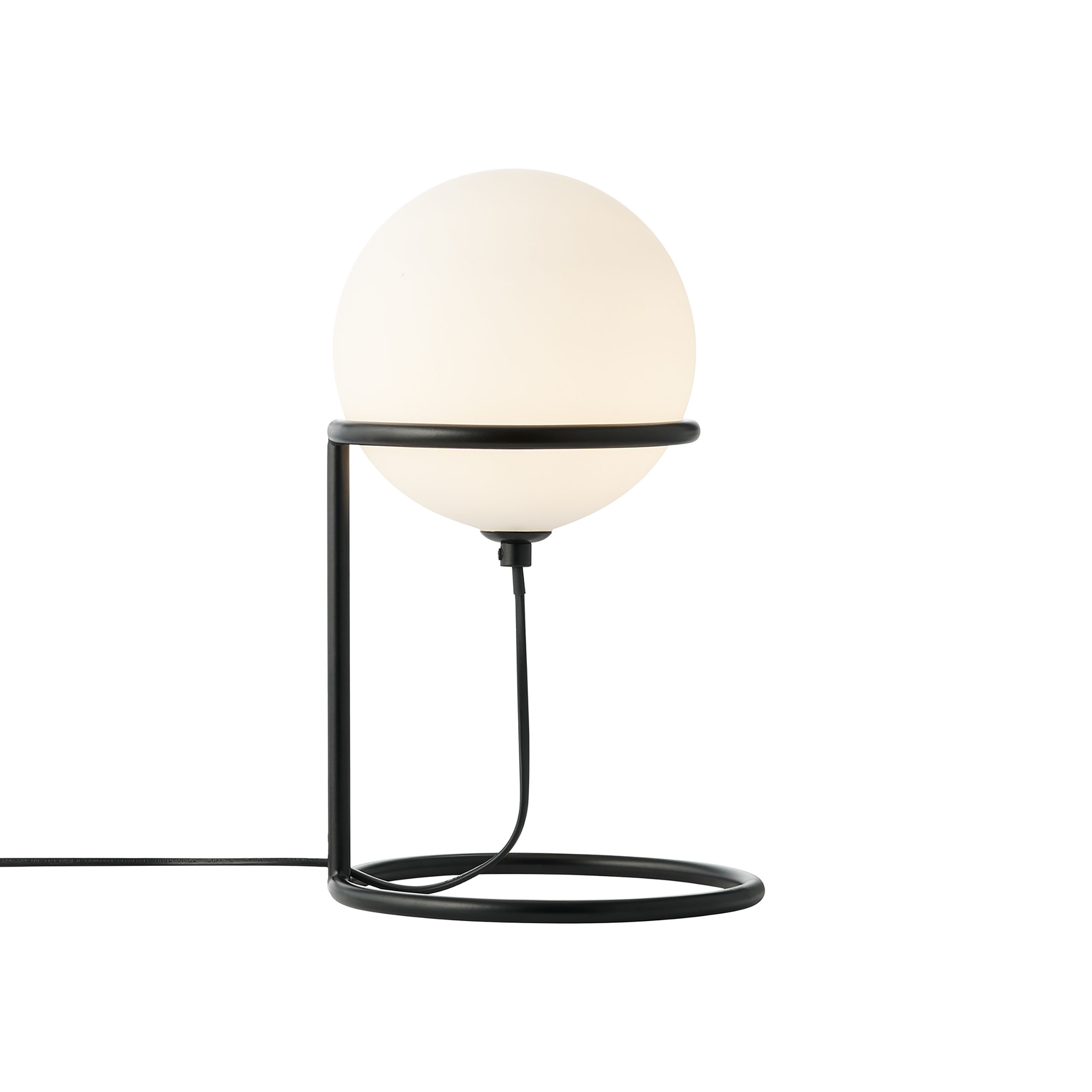 Modernissa Wilson-pöytävalaisimessa pyöreä lasivarjostin lepää elegantin mustan metallikehyksen päällä. Wilson-valaisin luo tunnelmaa ja pehmeää valoa tilaan kuin tilaan. Lasivarjostimen asentoa voi säätää tarpeen mukaan.