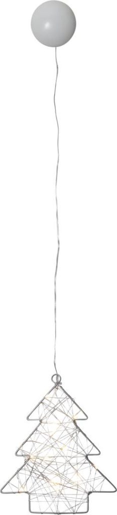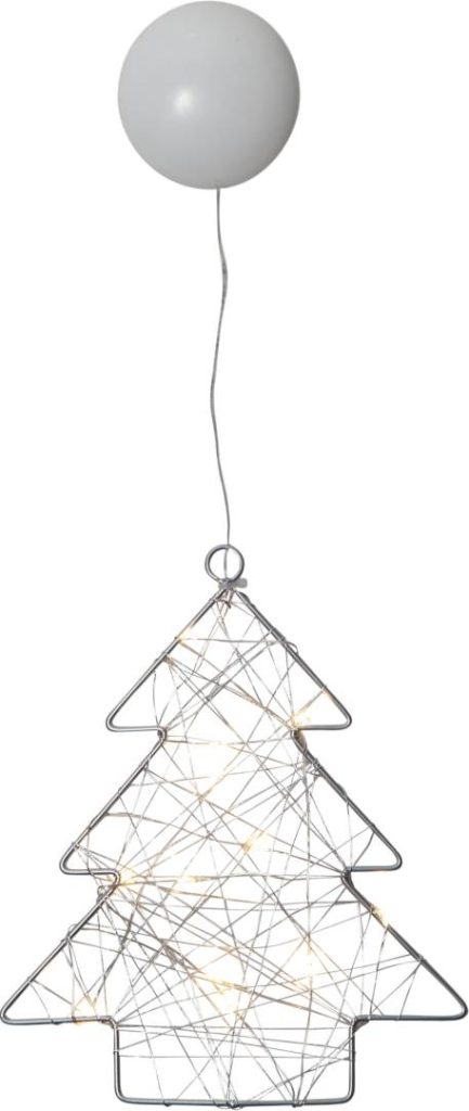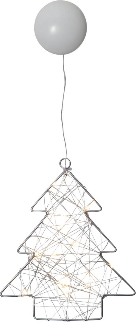 Paristokäyttöinen sisäkäyttöön sopiva metallikuusi, jossa on 12 lämpimän valkoista LED-valopistettä. Koriste on helppo kiinnittää imukupin avulla esimerkiksi ikkunaan tai peiliin.