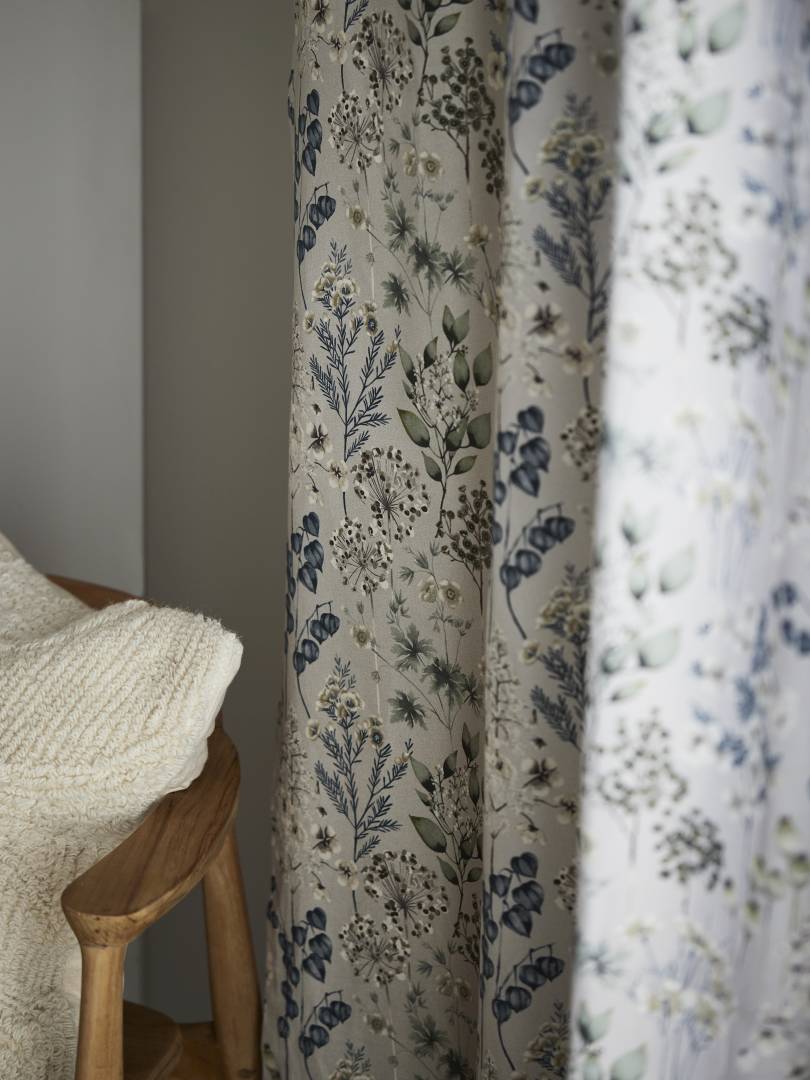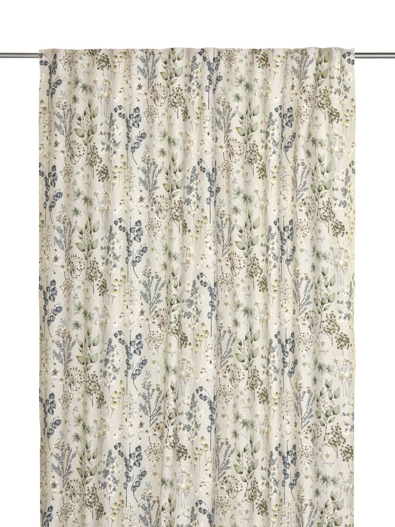 Pitkät verhot painetuilla kuvioilla. Verhoissa on monitoiminauha yläreunassa, päärmätyt sivureunat ja yliluotteluommel alareunassa. Pakkaus sisältää 2 verhoa.