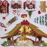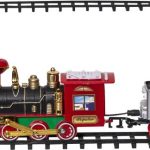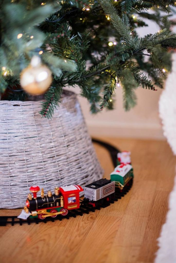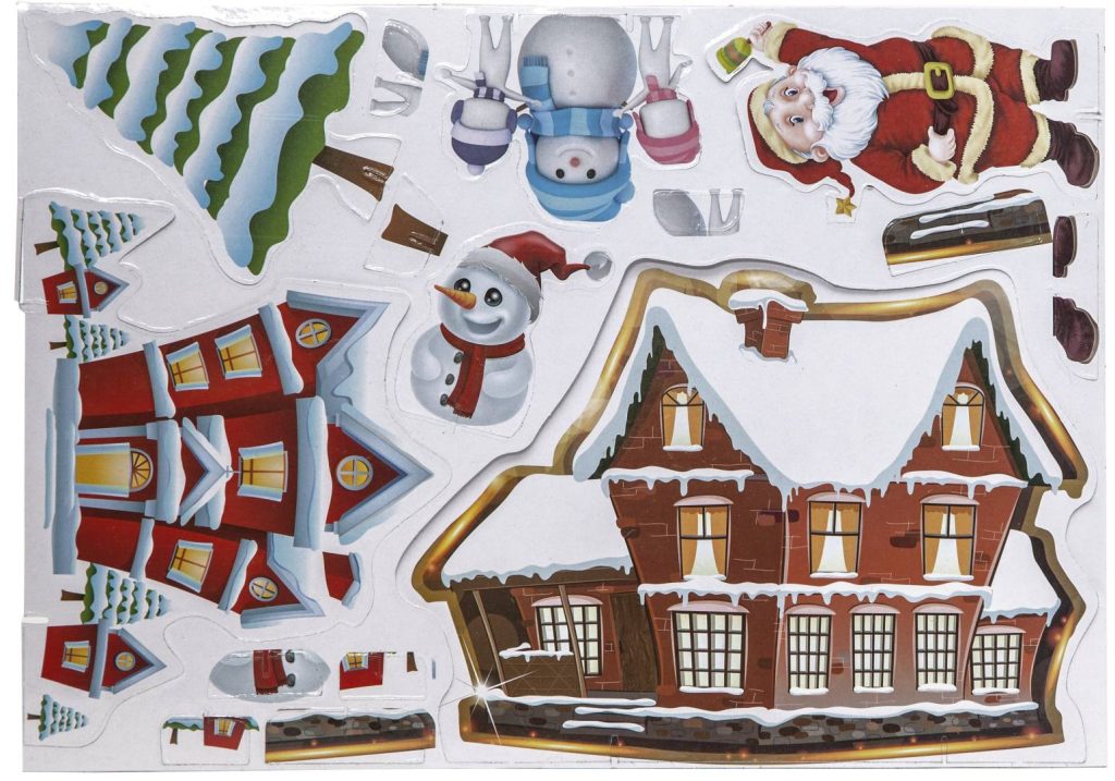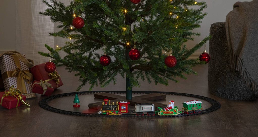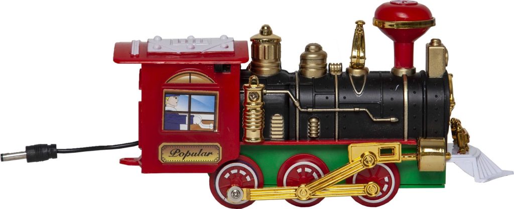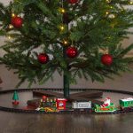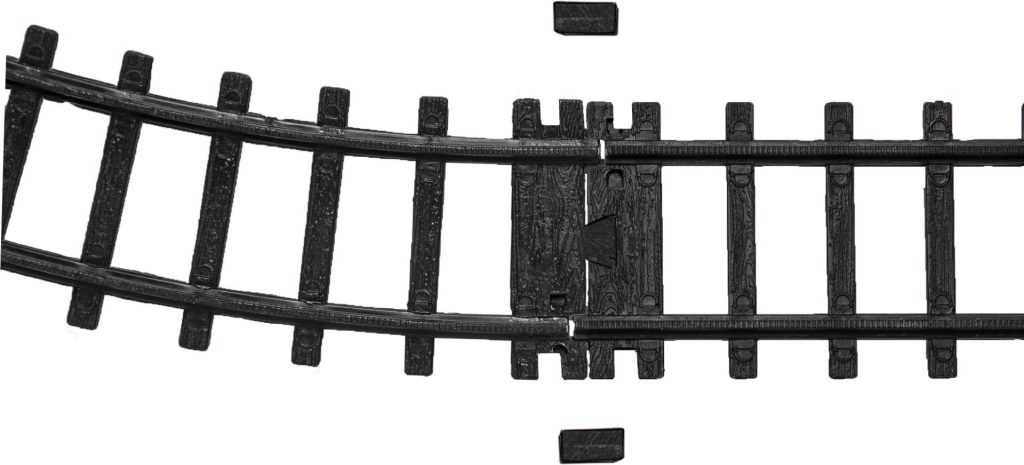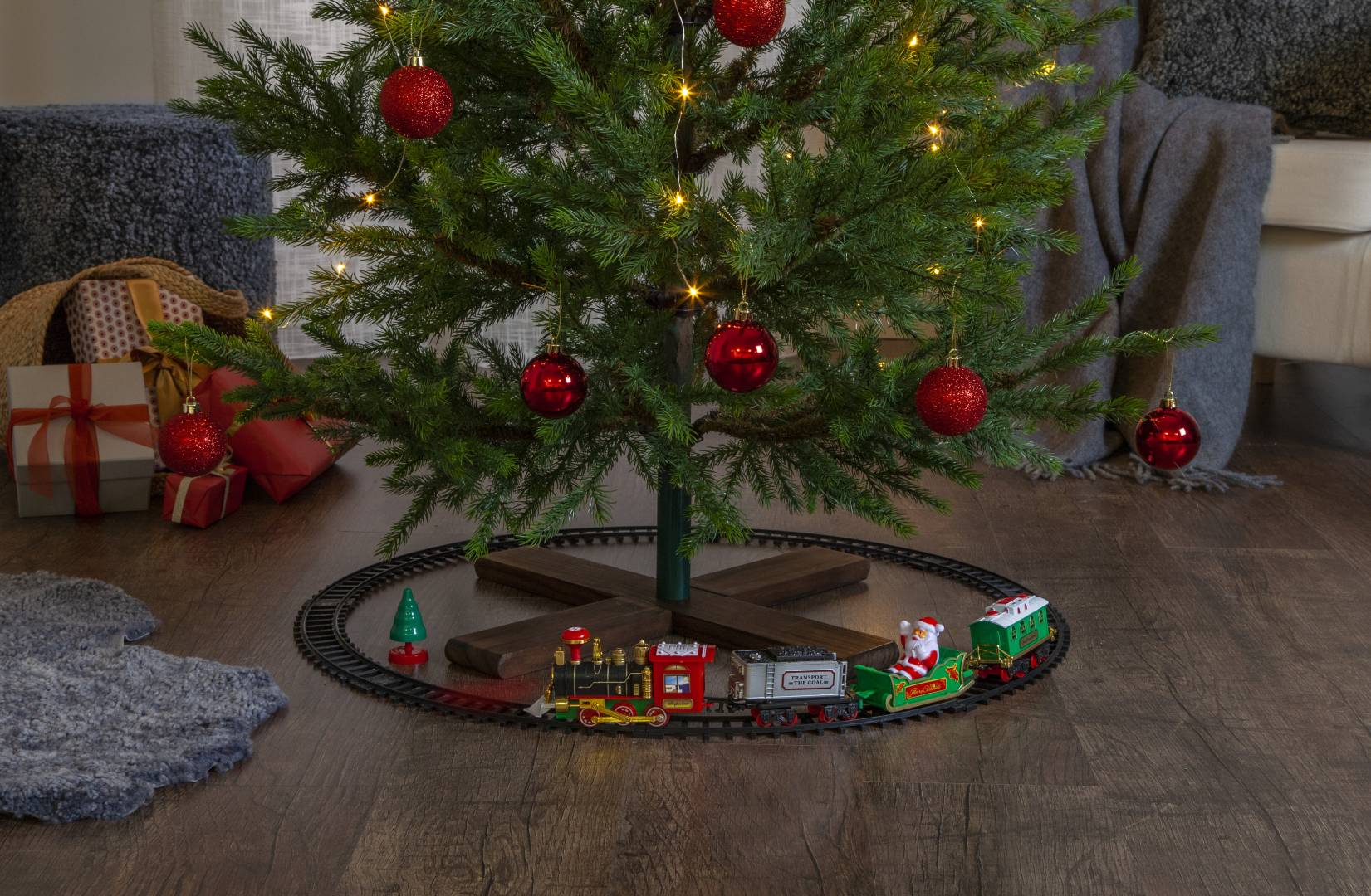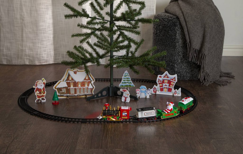 Pakkaus sisältää 10 ratapalaa, junan, ja pahviset koristeet.
