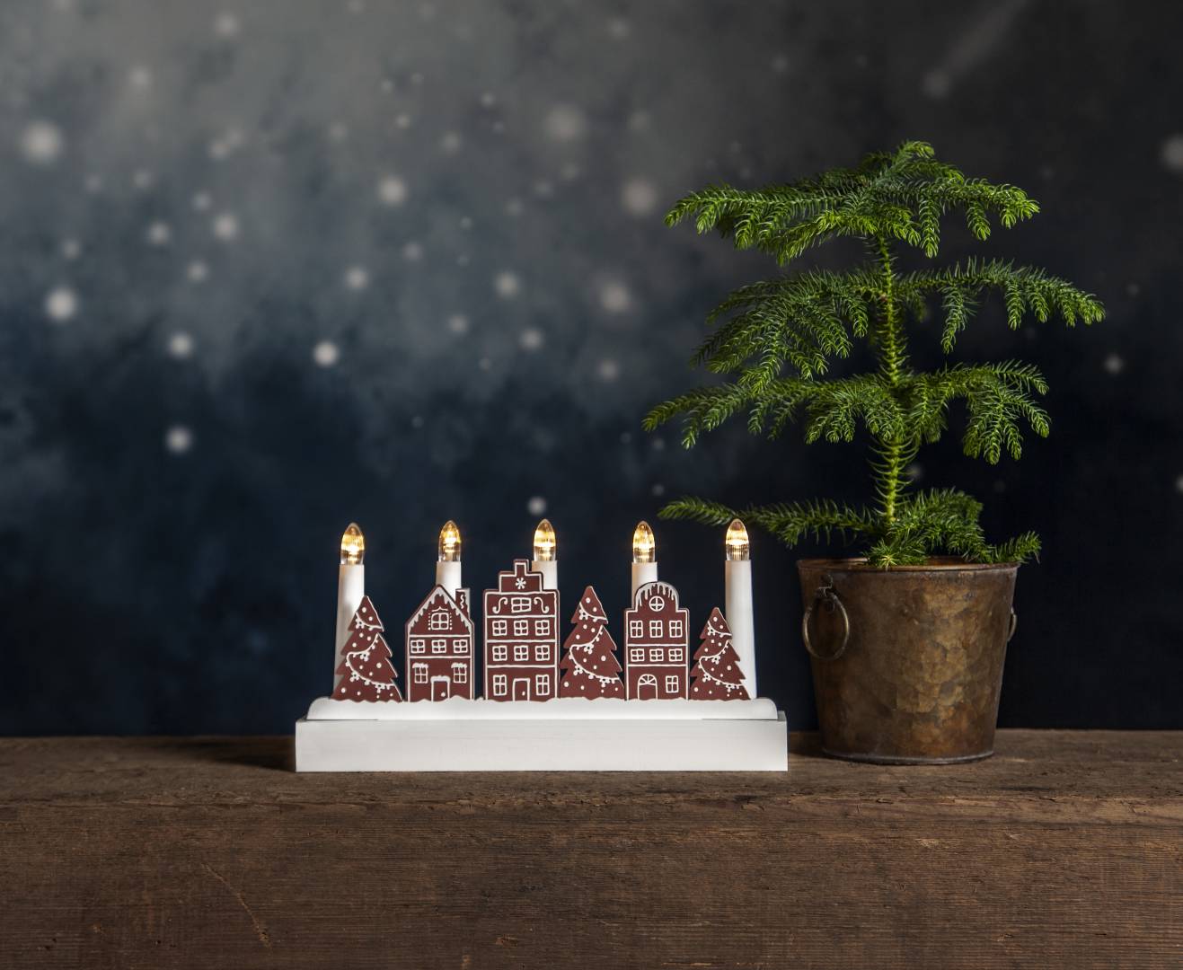 Paristokäyttöinen kynttelikkö, jossa laserleikatut koristeet. Sisäkäyttöön.