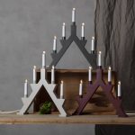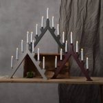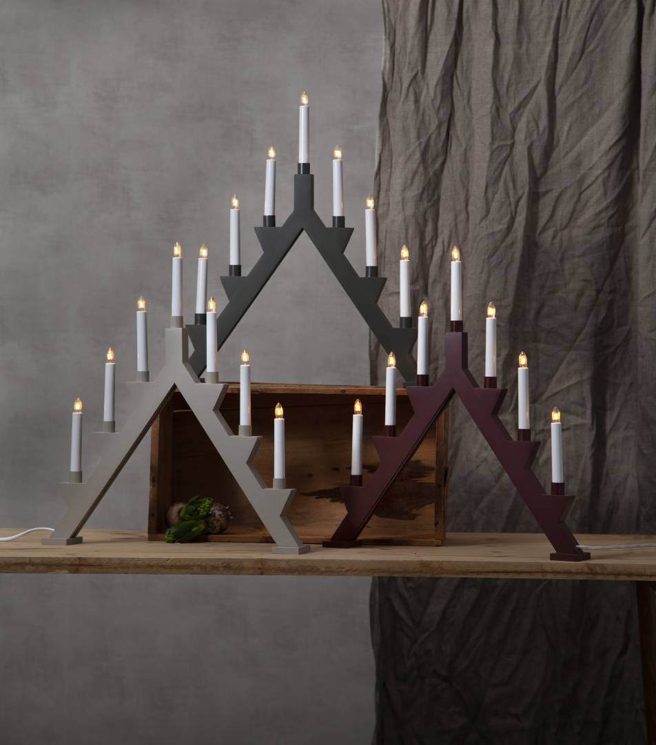 Perinteisen muotoinen kynttelikkö modernilla tvistillä, tyylikkään harmaan värisenä. Kynttilöissä on koristeena samanväriset metallirenkaat. Luo kotiin ihanan joulutunnelman.
